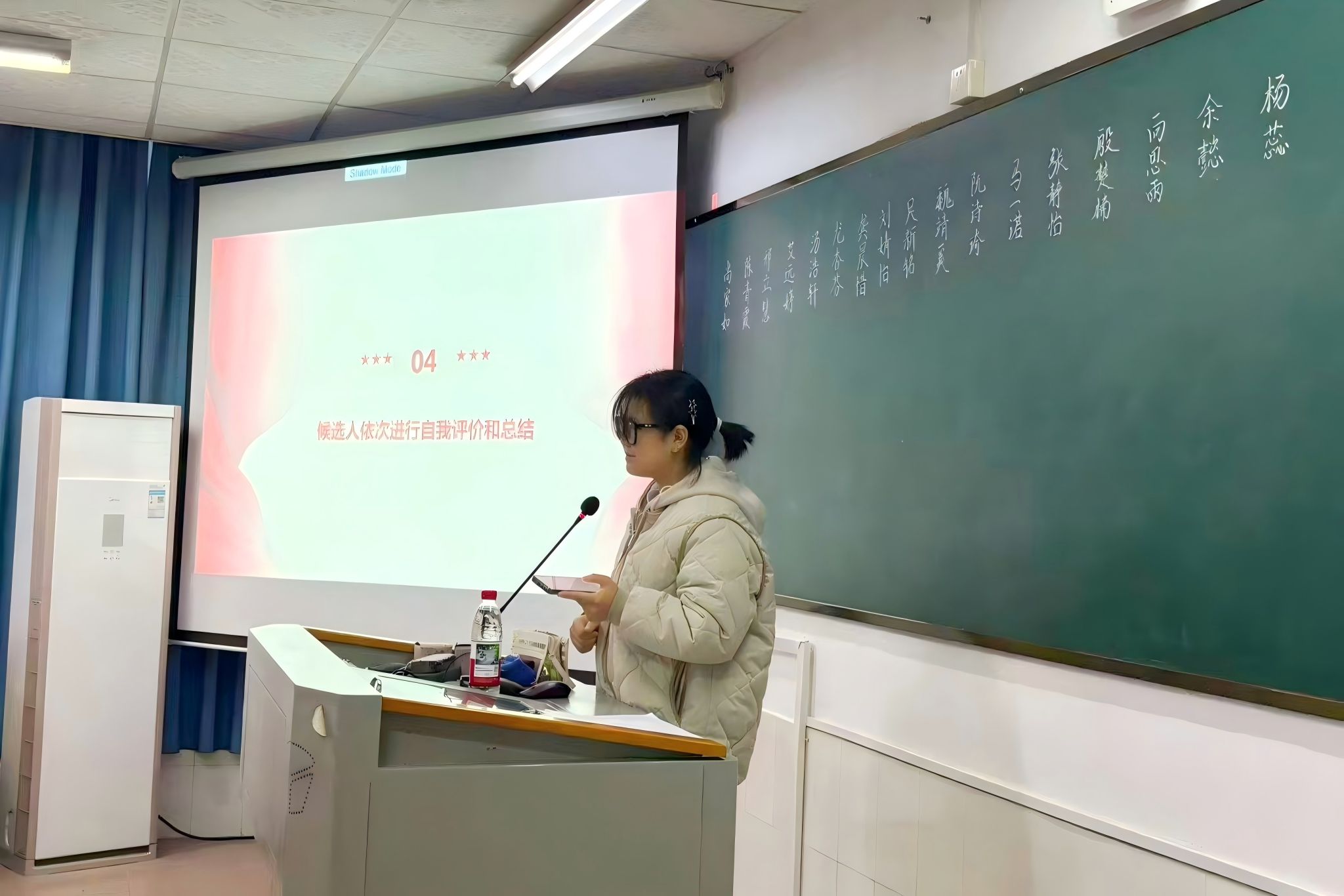 尚家如宣读了此次推优的具体条件以及经过资格审查后的推优候选人名单。在自我展示环节,各位候选人依次进行了自我评价与总结,围绕思想政治、学习科研、社会实践等方面,客观陈述了自己的表现与不足,表达了对加入党组织的向往和为师生服务的决心。针对在场学姐就党的理论知识、时事政策理解以及个人入党动机等方面提出的提问,候选人逐一进行了答辩。