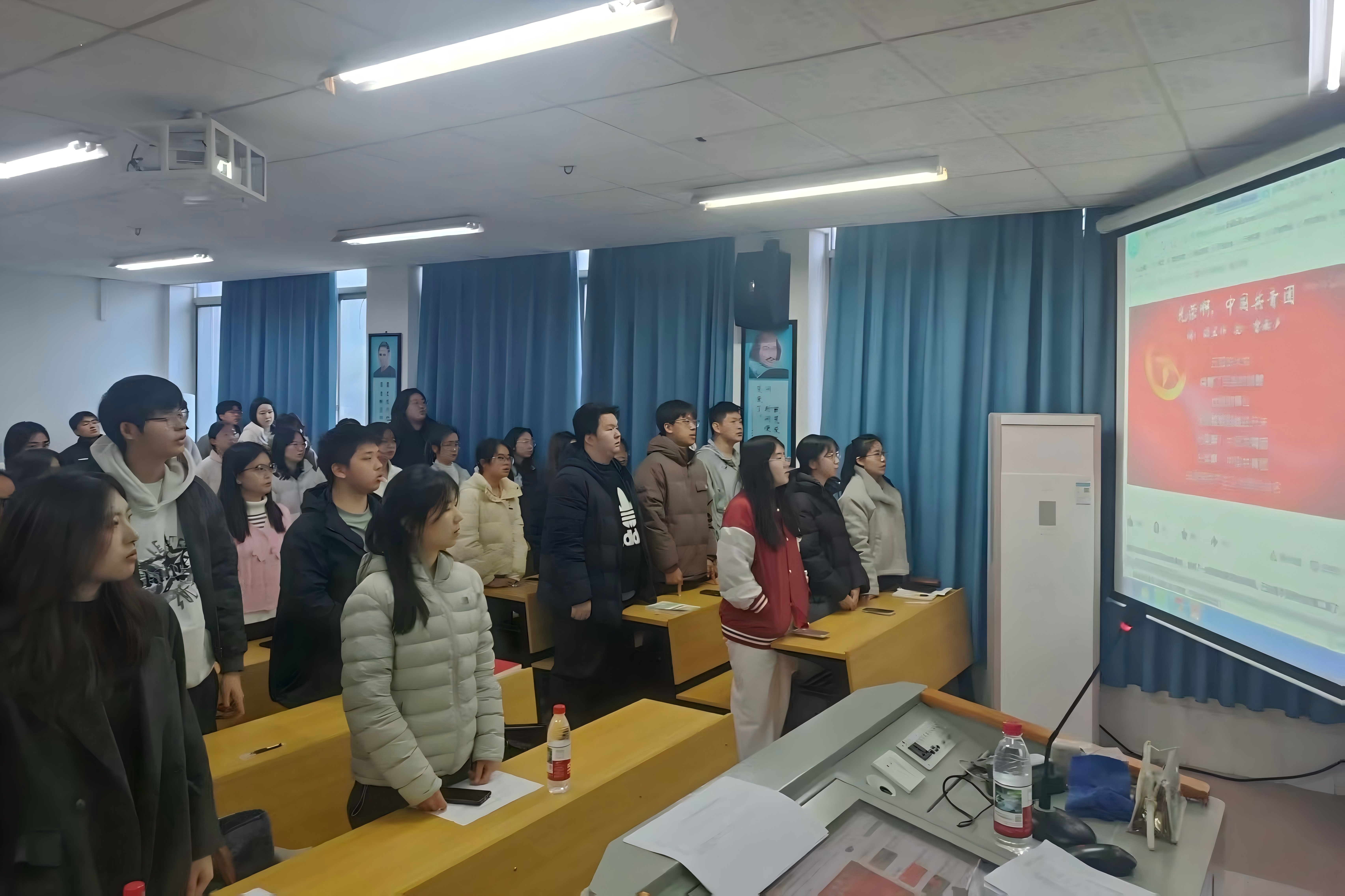 最后,全体与会人员起立,奏唱中国共产主义青年团团歌。至此,政治学与行政学班团支部入党积极分子推优大会各项议程全部完成。