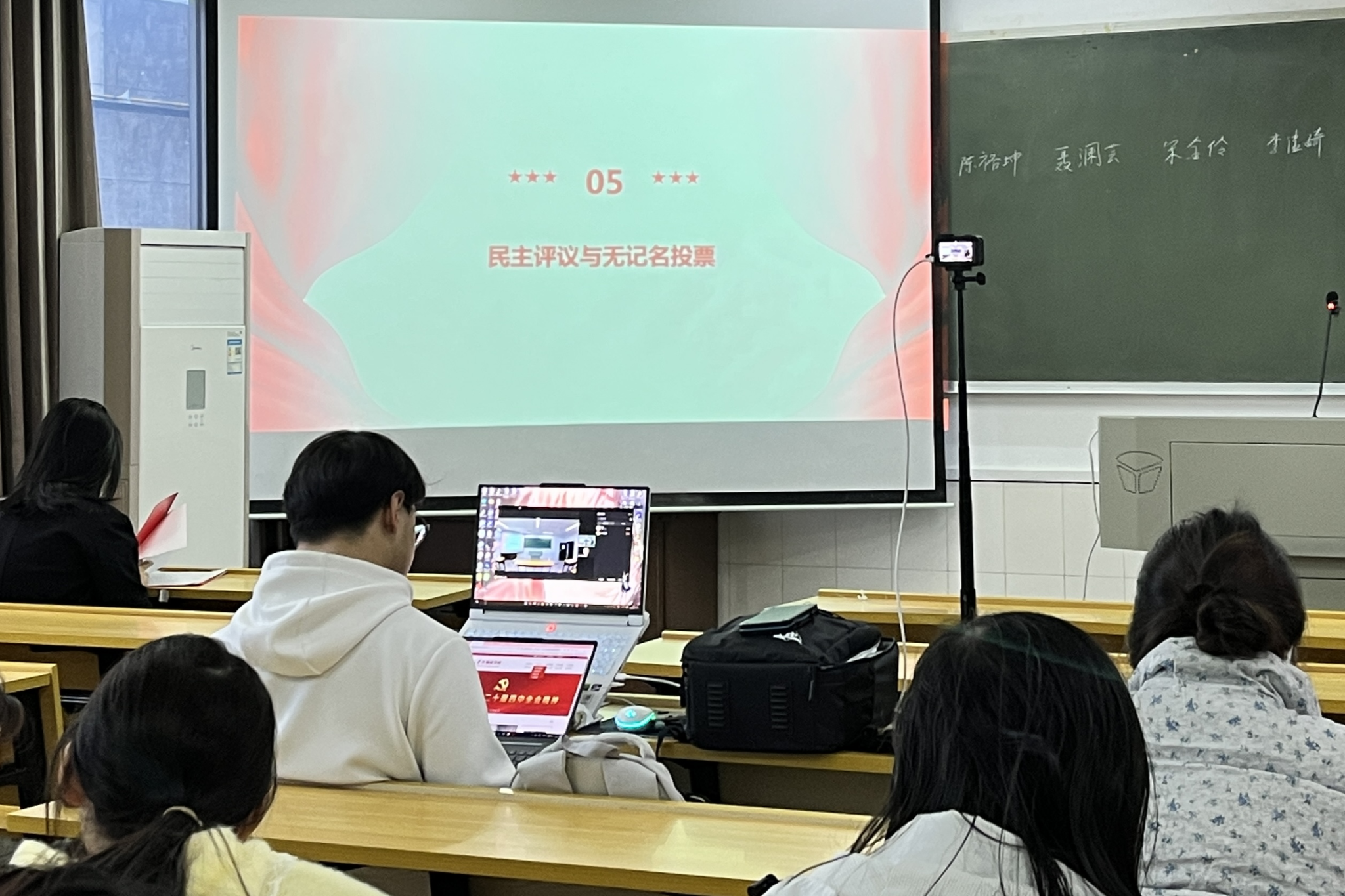会议由班级团支部书记季锦添主持,特殊情况由组织委员协助开展。会前,团支部对照推优条件,拟定差额比例为20%的候选人名单,为推优工作做好充分准备。