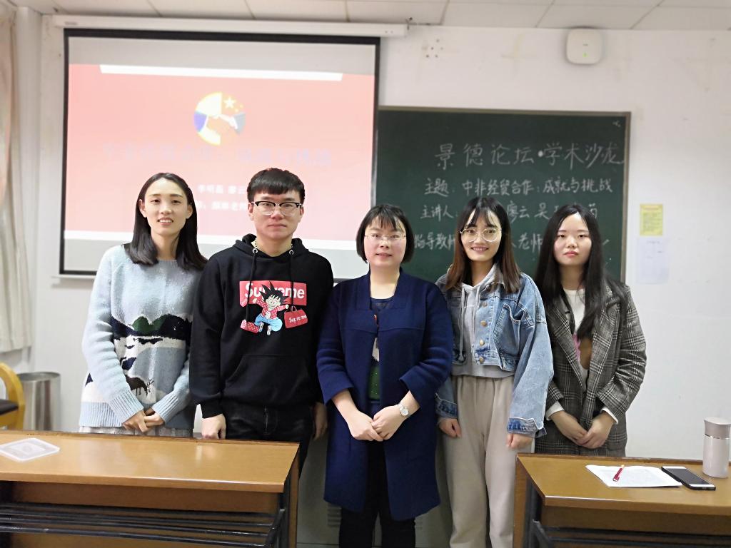 (通讯员:李明磊 陈雅倩)2019年4月15日下午13:30,公司于公管楼311教室举办了2018级第13期“景德论坛·学术沙龙”活动。本次学术活动以“中非经贸合作:成就与挑战”为主题,来自政治学专业的李明磊、廖云、吴玉、杨芮四名同学为本次活动的主讲人,并邀请颜琳老师为指导教师,肖丽娟同学担任主持人。
