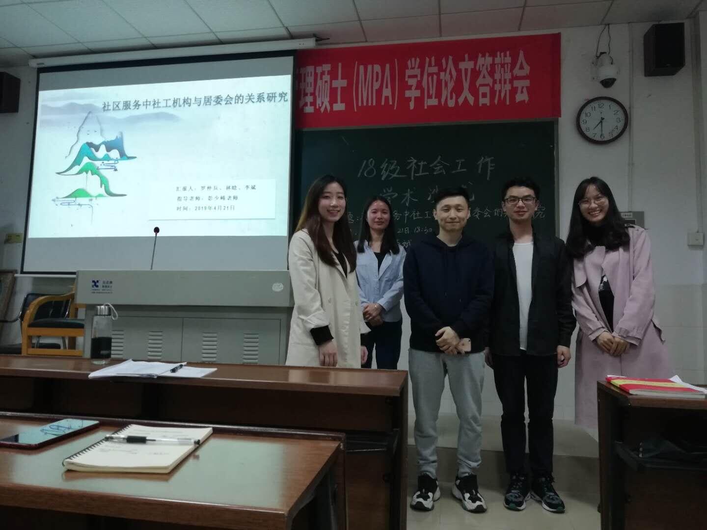 罗仲兵同学介绍了基层政府购买社工服务的背景、目的,并阐述了社工机构与居委会的关系模式及其“行政化”的关系现状;林晗同学则讲述了社会工作“行政化”的具体表现,分析了社工机构“行政化”严重的原因和相关影响;李斌同学通过分析上述问题产生的原因从社会工作专业角度提出了对策和建议,并进行了全面的总结。