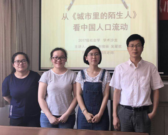 (通讯员 徐蒙翔)6月8日晚19点,公司于公管楼313教室举办了2017级第38期“景德论坛·学术沙龙”。本次活动以“从《城市里的陌生人》看中国流动人口”为主题,来自社会学专业的陈曦、刘俊丽、吴翠欢三位同学为本次活动的主讲人。本次活动邀请了社会学系郭庆老师作为指导嘉宾,并由郭红同学主持。