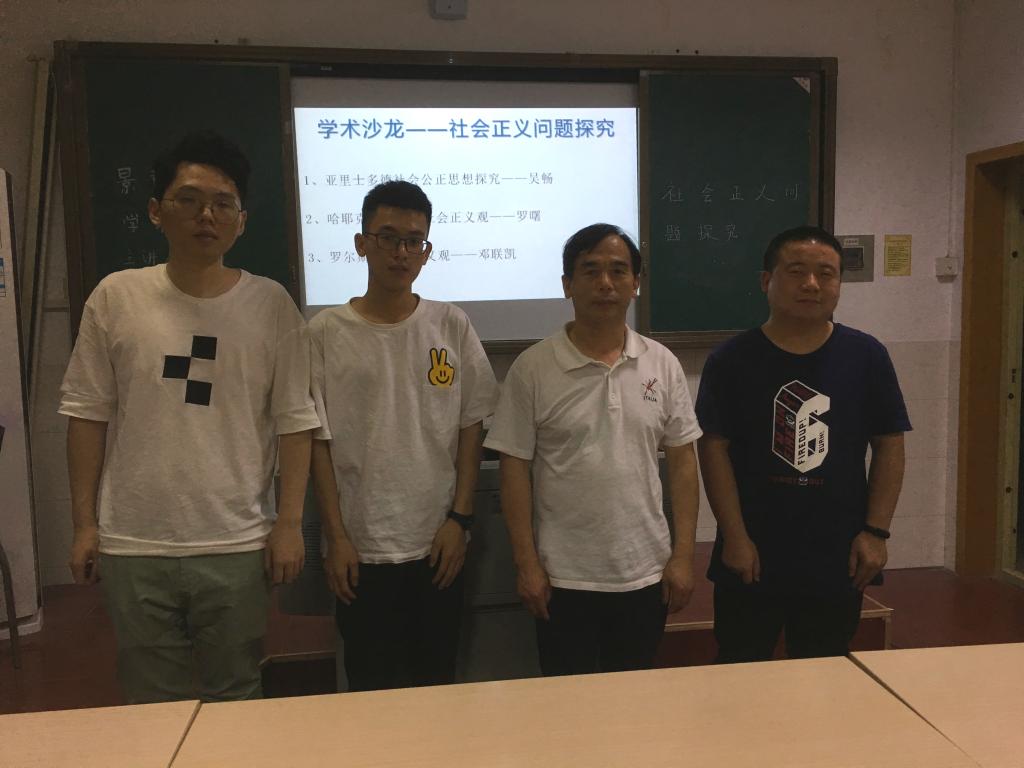 第33期学术沙龙活动以“社会正义问题探究”为主题,来自哲学专业员工的吴畅、罗曙、邓联凯三位同学为本次活动的主讲人,并邀请了彭定光老师作为指导嘉宾。三位主讲人针对亚里士多德社会公正思想、哈耶克自由主义社会正义观、罗尔斯社会正义观等问题进行了分析。彭老师对三位主讲人的发言表示肯定,并详细地介绍了社会正义观的相关知识内容。彭老师指出本次学术沙龙的内容可以划分为两个部分:整体正义和个体正义。彭老师认为在探讨社会正义问题这一主题时,主讲人应该从理论来源、类型、存在的问题、问题成因以及对现代社会的影响性等方面进行分析。彭老师建议在选题方面,主讲人员应选取具有价值性、意义性的问题,产生积极的思考并由此提炼出自己的观点。