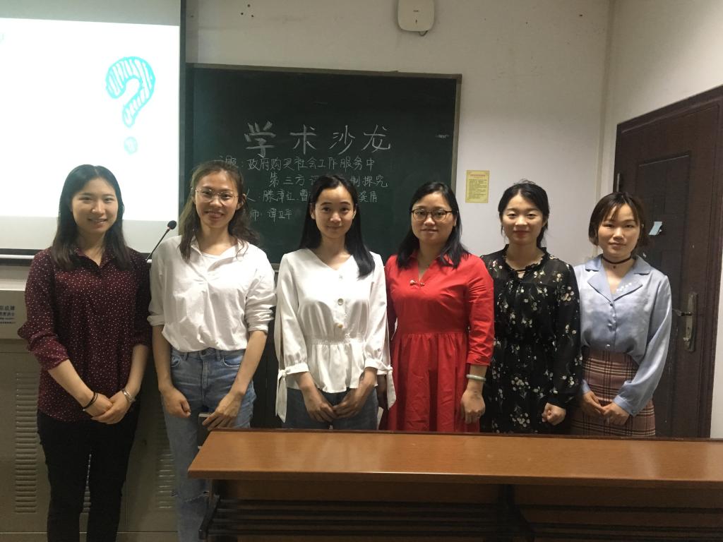 第37期学术沙龙活动以“政府购买社会工作服务中第三方评估机制探究”为主题,来自社会工作专业的龚倩、滕漳红、曹丽媛、王珍四位同学为本次活动的主讲人,并邀请了社会学系谭卫华老师前来指导。谭老师肯定了同学们的表达能力以及为此次沙龙所做的各项努力。谭老师提出三位主讲人对社工服务第三方评估的当前机制探讨不够,需加强学术钻研,并希望同学们在今后的实习工作中要对其中存在的问题能够形成一种积极主动的思考习惯。