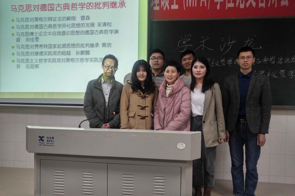 (通讯员:孙鹏懿 李宇晴)2019年3月28日晚19:00,公司于公管楼416教室举办了2018级第6期“景德论坛·学术沙龙”活动。本次活动以“马克思主义哲学对德国古典哲学的继承发展”为主题,来自哲学专业的雷森、吴清松、刘佳雯、黄欣、孙鹏懿、伍昭辉六位同学为主讲人,雷森同学为主持人,并邀请了哲学系余晓菊老师作为指导嘉宾。