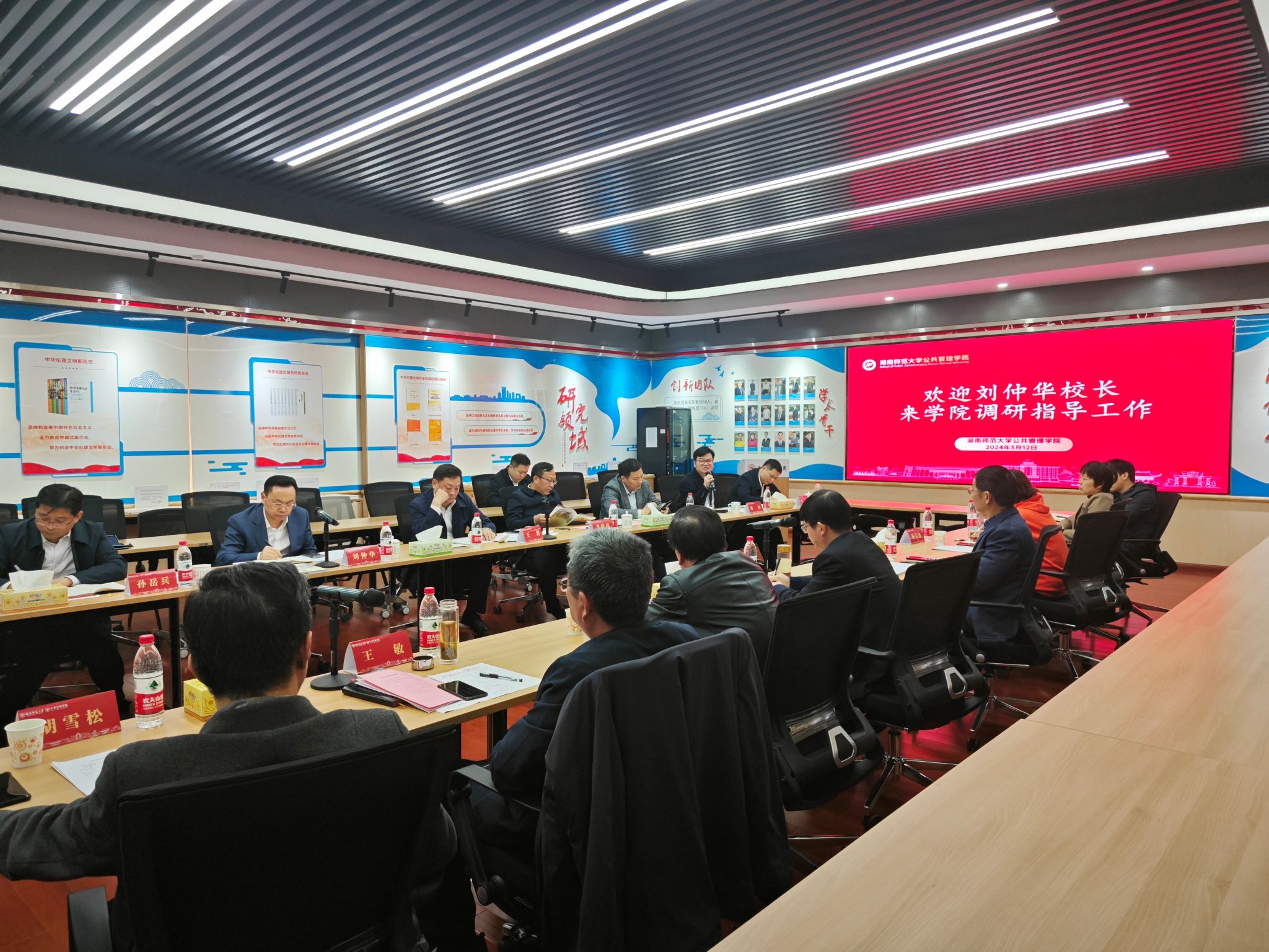 座谈会上,刘仲华董事长先后听取了经理毛新志、道德文化研究院经理向玉乔、副经理(政治学科负责人)王敏分别就公司发展与湖南省哲学世界一流培育团队建设、教育部人文社会科学重点研究基地“中华伦理文明研究中心”建设和政治学“十四五”省级重点团队建设的情况汇报。陪同调研的发规处处长孙岳兵、社科处副处长李超民和“潇湘学者”特聘教授张涛分别发言,就公司学科发展和基地建设有关问题作出回应并提出指导性意见。