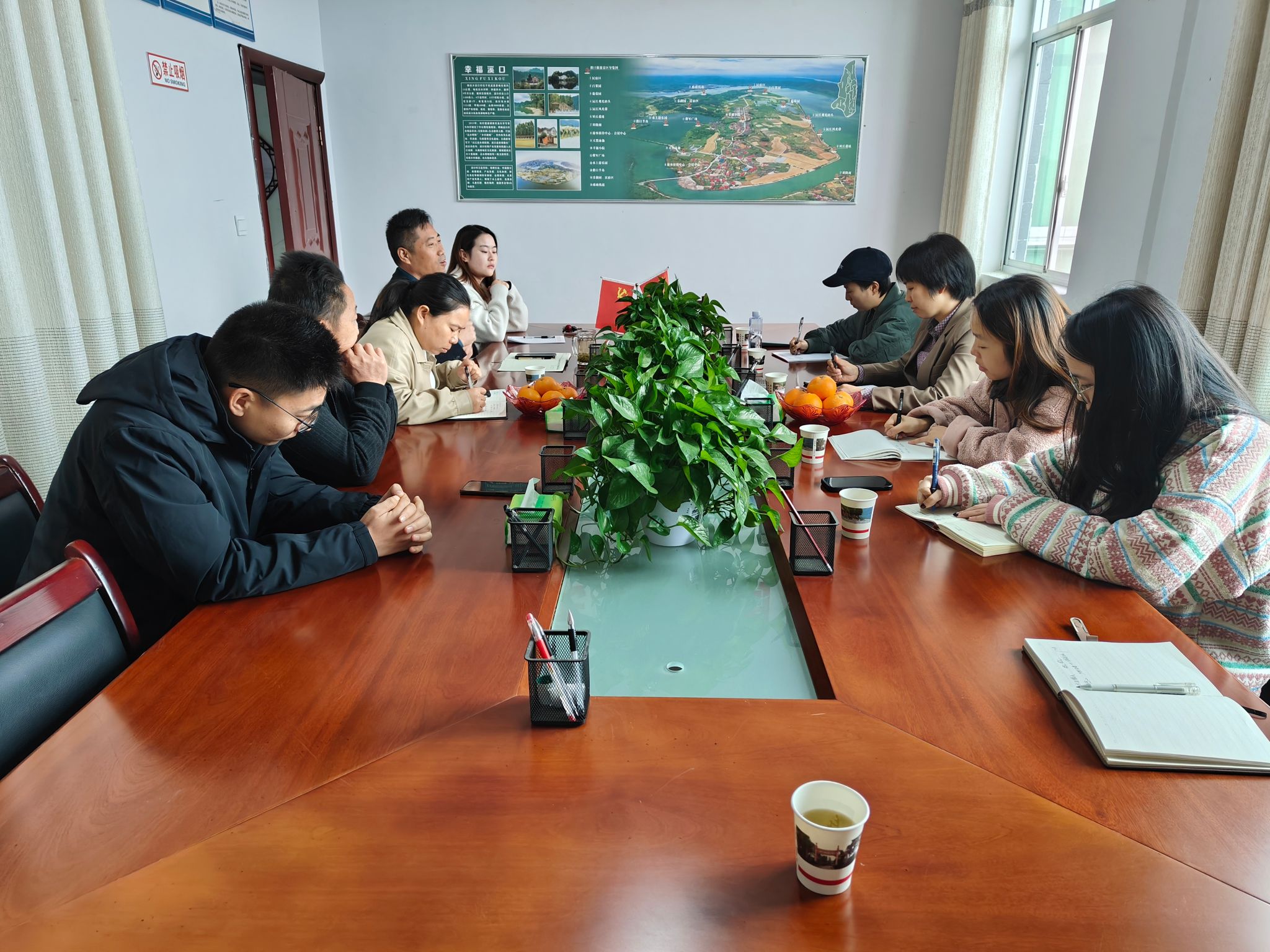 11月27日,公司副经理苏静教授与柿溪乡乡长刘芹芹、副乡长苏晓鹏、副乡长王淼、溪口村党支部书记张贤祥、曾家冲村党支部书记刘吉阳在溪口村进行座谈。座谈会伊始,刘芹芹乡长等对苏静副经理一行的到来表示热烈欢迎,并就柿溪乡的概况及该乡在和美乡村建设与农村人居环境治理等方面的典型举措、突出成效、后期规划等内容进行了详细介绍。苏晓鹏副乡长结合柿溪乡具体实际,阐述了农村人居环境治理在推进乡村治理体系和治理能力现代化进程中的功能定位、运作机理与显著成效。溪口村党支部书记张贤祥详细介绍了溪口村在党建引领、产业发展、公共服务等方面的具体情况。随后,苏静副经理就和美乡村建设、农村人居环境治理和乡村产业发展等相关问题在座谈会上展开交流探讨,她表示,柿溪乡及其辖属的溪口村、曾家冲村麻溪自然院在和美乡村建设与农村人居环境治理等方面均取得了显著成效,为推进乡村治理实践与助力乡村振兴战略提供了值得推广、可供借鉴、适合学习的有效举措与成功经验。会后,苏静副经理带领的调研团队参观了溪口村山林采摘区、水乡游览区和幸福小院等地。