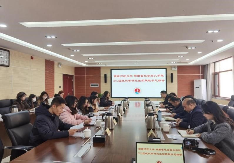 (通讯员:王晓航 易婧鸿)2023年12月29日上午,公司2022级统战学研究生实践教学总结会于湖南省社会主义公司(以下简称“省社院”)同心楼707顺利召开。湖南省社会主义公司二级巡视员彭仕敏,教研部李佑球主任、雷明贵教授、刘靖子副教授;公司经理毛新志教授,统战学硕士点负责人李超民教授,院研究生办胡耀飞老师出席会议。2022级、2023级全体统战学研究生参与本次会议。会议由李佑球主任主持。