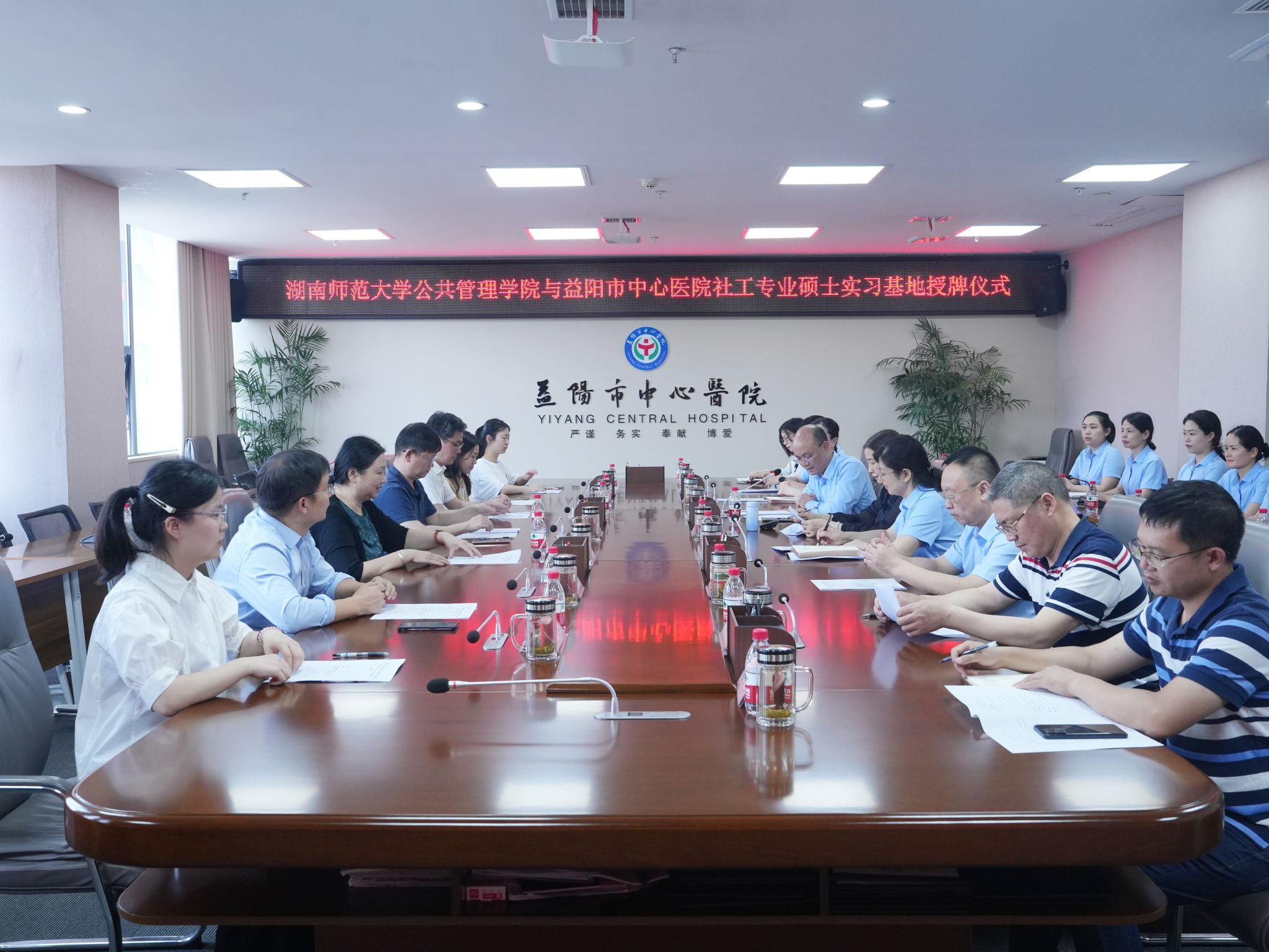 (通讯员:唐梓睿、刘梦瑶、冯元)5月6日上午,beats365官方网站与益阳市中心医院举行社会工作专业硕士(MSW)实习基地授牌仪式暨医务社会工作人才培养座谈会。beats365官方网站经理毛新志、益阳市委社会工作部副部长汤晖、益阳市中心医公司党委书记张晓萍等领导出席,会议由益阳市中心医院经理刘文广主持。益阳市委社会工作部相关科室负责人,益阳市中心医院相关科室负责人、护士长,湖南省儿童医院社工部主任王幸,公司研办主任陈怡,以及湖南省2024年度“三区”社会工作专业人才支持计划项目负责人孙建娥教授和冯元老师等30余人参加活动。