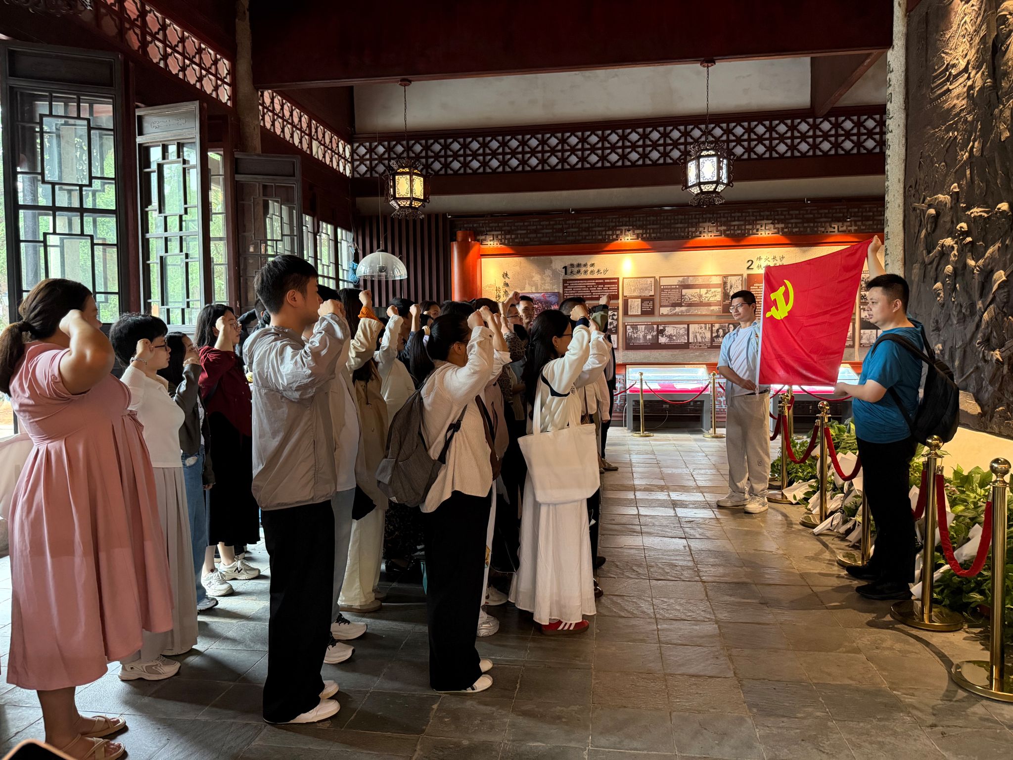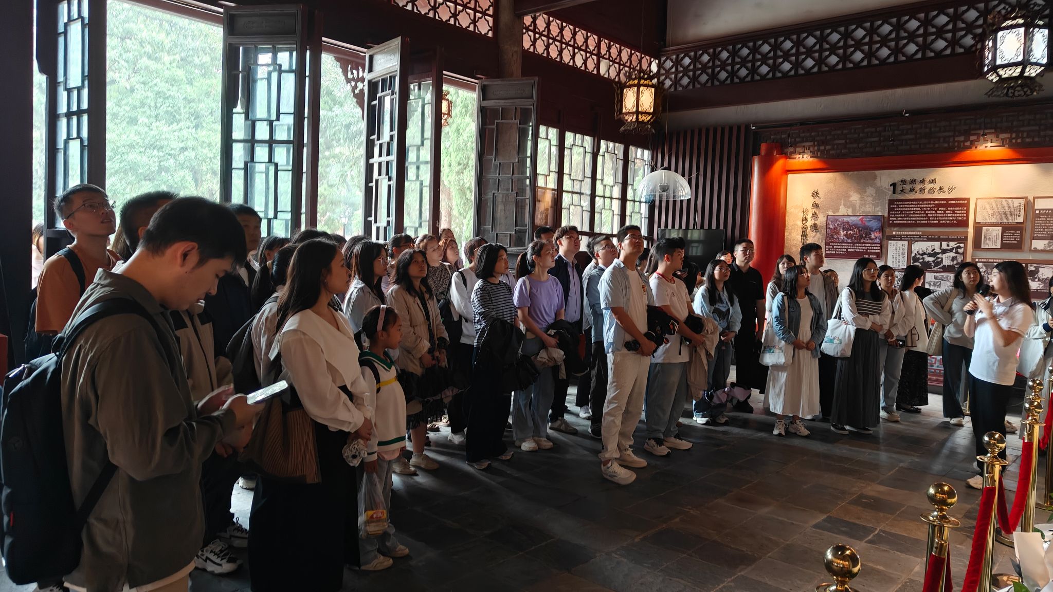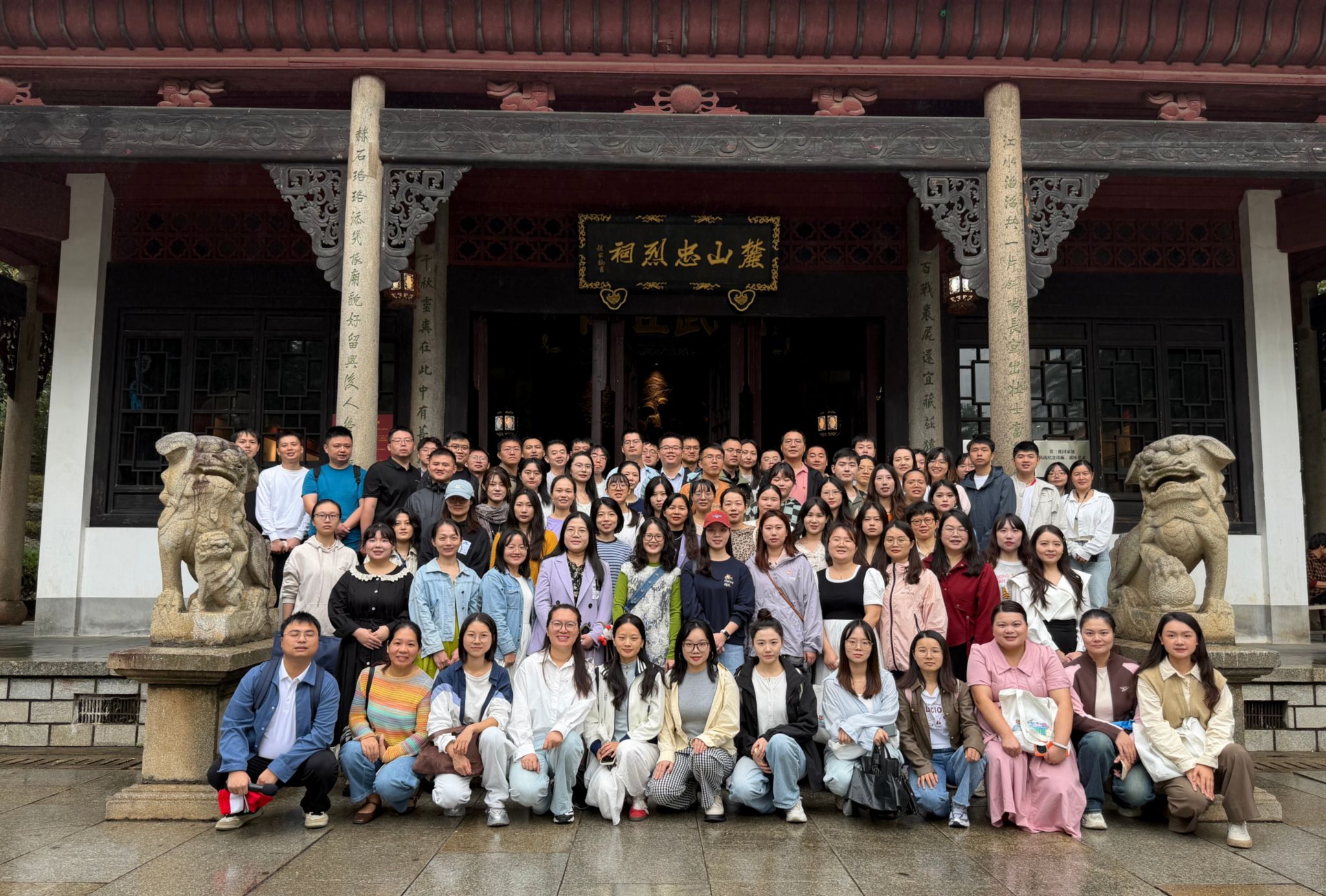 随后,同学们前往麓山忠烈祠接受党性教育。讲解员深情讲述了三次长沙会战的悲壮历史,带领同学们深刻感悟了抗日战争时期烈士们不畏牺牲、舍生取义的伟大精神。在此过程中,党员新生们重温了入党誓词,铭记初心使命。最后,全体新生在忠烈祠前合影留念,为此次意义非凡的入学教育活动画上了圆满的句号。