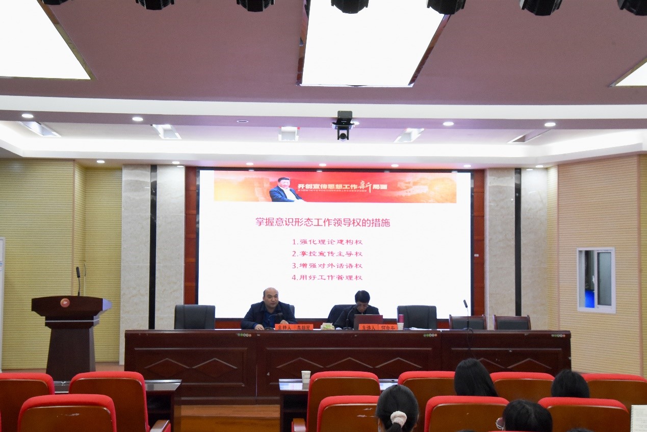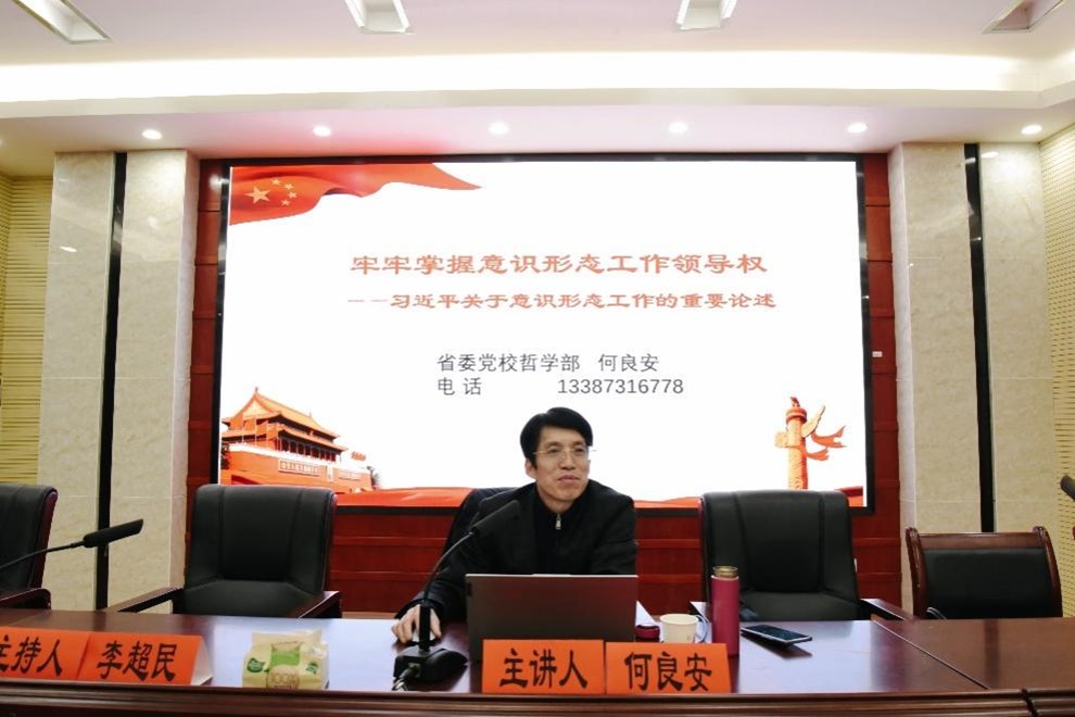 (通讯员王媛)2022年3月3日晚,公司“正大日新”研究生大讲堂第四讲暨新学期研究生全体会议在博后楼四楼报告厅顺利举行。湖南省委党校哲学部主任何良安教授应邀作了题为“牢牢掌握意识形态工作领导权”的专题讲座。此次讲座由公司副经理李超民教授主持。研究生办公室胡耀飞老师及2021级全体硕士研究生参加。