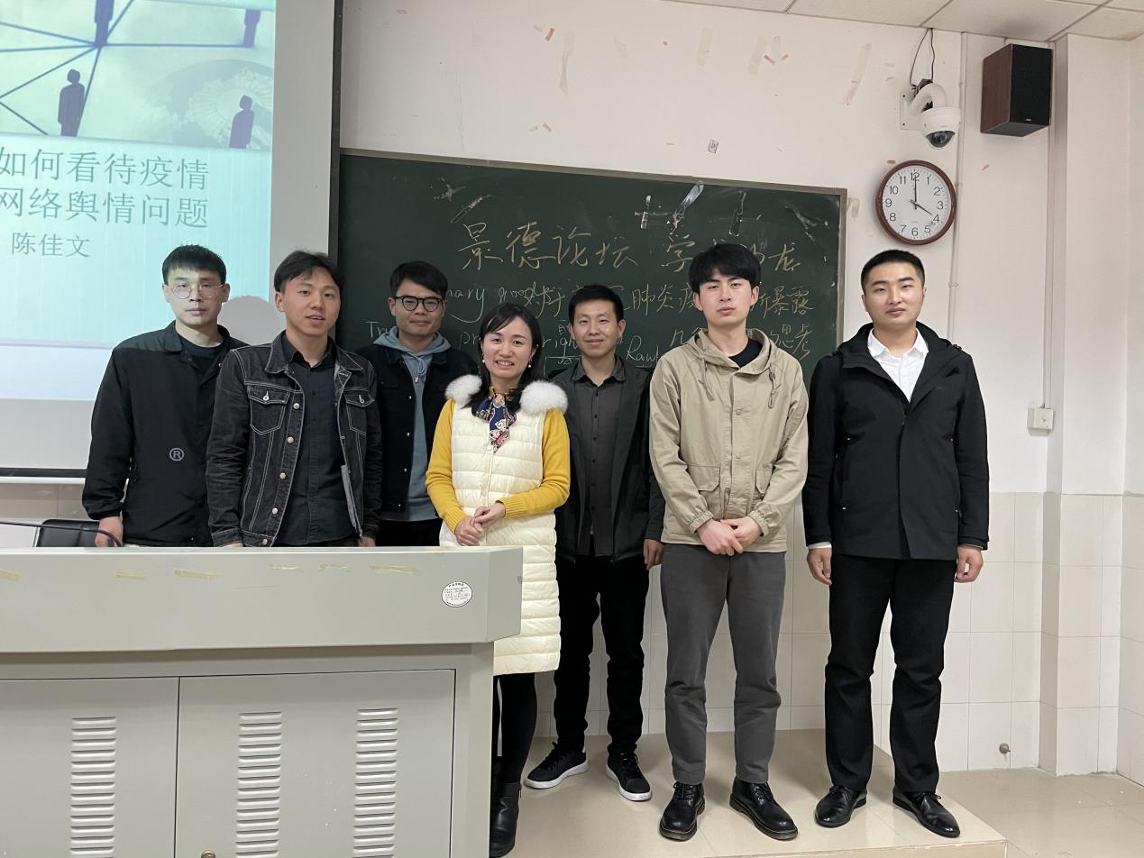 2021年4月1日下午3点,公司于公管楼416教室举办了2019级第3期“景德论坛·学术沙龙”活动。本次活动以“对于新冠疫情下暴露的几个问题的思考”为主题,来自哲学专业的陈佳文、白彦、李建宇、王李军、王硕和吴有六位同学为本次活动的主讲人,陈佳文同学为主持人,并邀请了伦理学专业的余露老师前来指导。