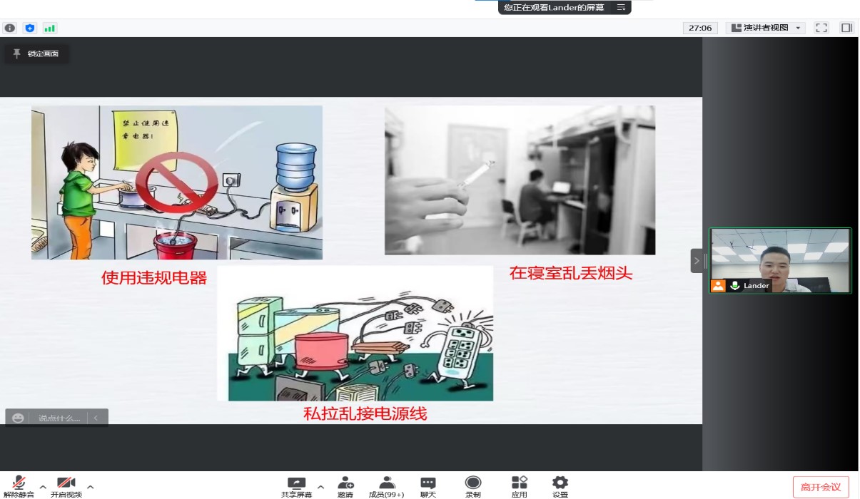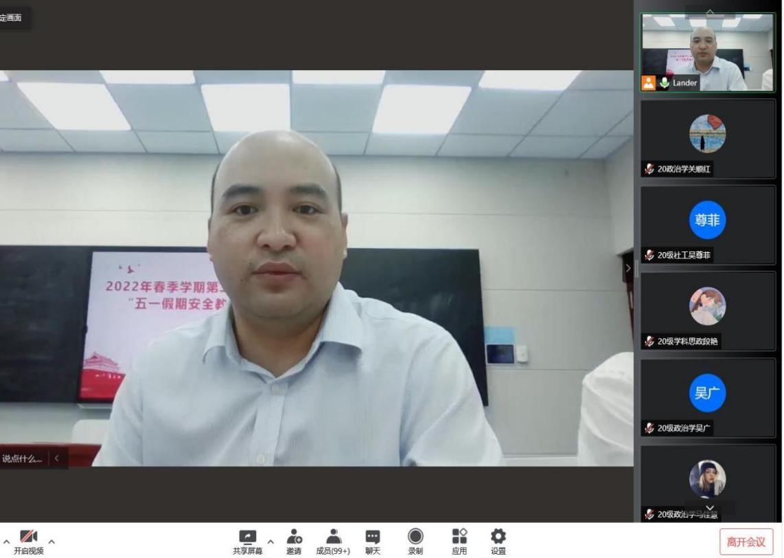 (通讯员 肖伟)在五一假期来临之际,为推动公司安全教育工作顺利开展,增强员工安全防范意识,公司结合当前疫情防控形势以及公司关于“五一”假期的政策安排,于4月26日下午以腾讯会议的形式面向公司全体研究生召开“五一假期安全教育”线上会议。公司副经理李超民教授、研究生办公室主任陈怡老师、辅导员胡耀飞老师出席此次会议。公司500多名研究生参与会议,会议由胡耀飞老师主持。