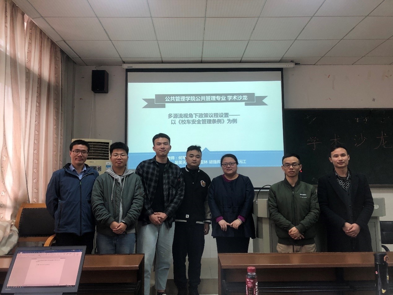 第8期“景德论坛·学术沙龙”活动以“多源流视角下政策议程设置——以《校车安全管理条例》为例”为主题,来自公共管理专业的吴笑天、王磊、朱亚林、王铁锁、胡强辉、尹沅江六位同学为主讲人,并邀请了行政管理学系何琴老师作为指导嘉宾。六位主讲人分别分析了议程设置理论、多源流理论、多源流模型在新时代的构建以及校车安全问题进入政策议程等问题。何老师充分肯定了六位主讲同学的发言,认为本次活动的选题极具研究性且包含了深刻的理论意义和现实意义。同时,何老师也指出了本次活动存在的不足并且提出了相关建议:一是文章阐述需明确指出多源流模型在中西方应用中的区别;二是需思考如何构建具有中国本土特色的多源流分析框架;三是需运用多源流理论分析新媒体运用在中国政策议程设置中发挥着怎样独特的作用。