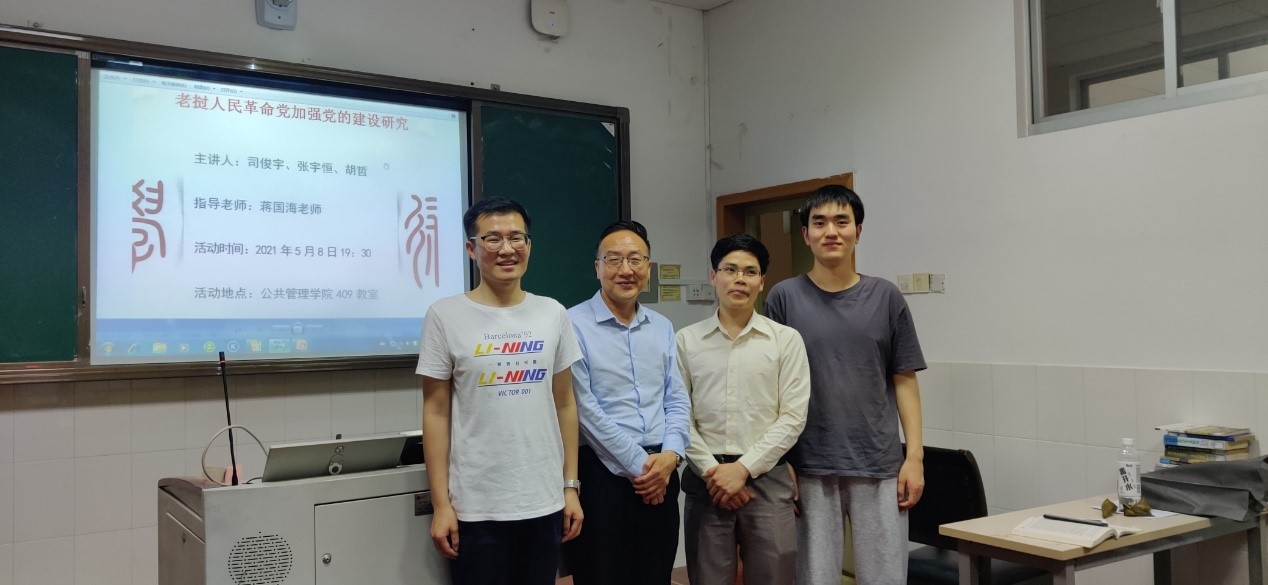 第27期“景德论坛·学术沙龙”活动以“老挝人民革命党加强党的建设研究”为主题,来自政治学中共党史方向的司俊宇、张宇恒、胡哲三位同学为本次活动的主讲人,并邀请了中共党史研究方向的蒋国海老师前来指导。三位主讲人介绍了老挝人民民主共和国的基本情况,然后从巩固人民民主制度层面出发,对加强社会主义民主进行了分析,最后总结了老挝人民革命党在加强党的建设方面采取的主要措施。同学讲述结束后,蒋老师围绕制度层次展开了讲解,认为各国的制度不仅要对现有架构进行简单的总结,更要从源头把握其发展路径,这是因为各国的制度都是符合本国实际、切合本国民众利益,对老挝政治制度的探讨更要从为什么发展成这样来把握。
