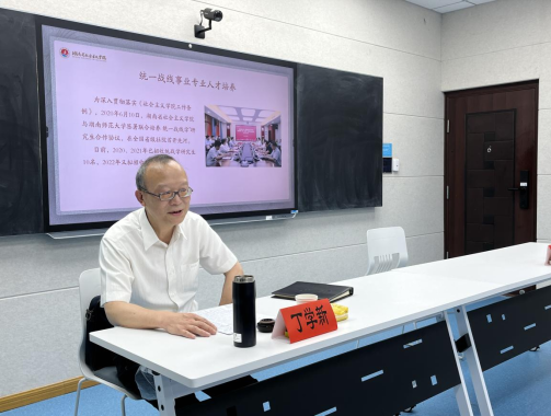 (通讯员 曾泉锦)2022年6月13日,中共湖南省委统战部副部长、省社会主义公司党组书记丁学新应邀来公司作题为“从中共统一战线百年历史中感悟‘重要法宝’”的学术讲座。此次讲座由民盟湖南省委会副主委、公司教授杨君武主持,湖南师大各民主党派基层组织和统战团体负责人、校统战部工作人员和公司部分师生聆听了讲座。本讲座是中国统战理论研究会党外代表人士统战工作理论湖南研究基地、湖南师大社会主义公司以及公管院统战学研究生学位点联合举办的统战工作研究系列讲座第十一讲、第二期第五讲。