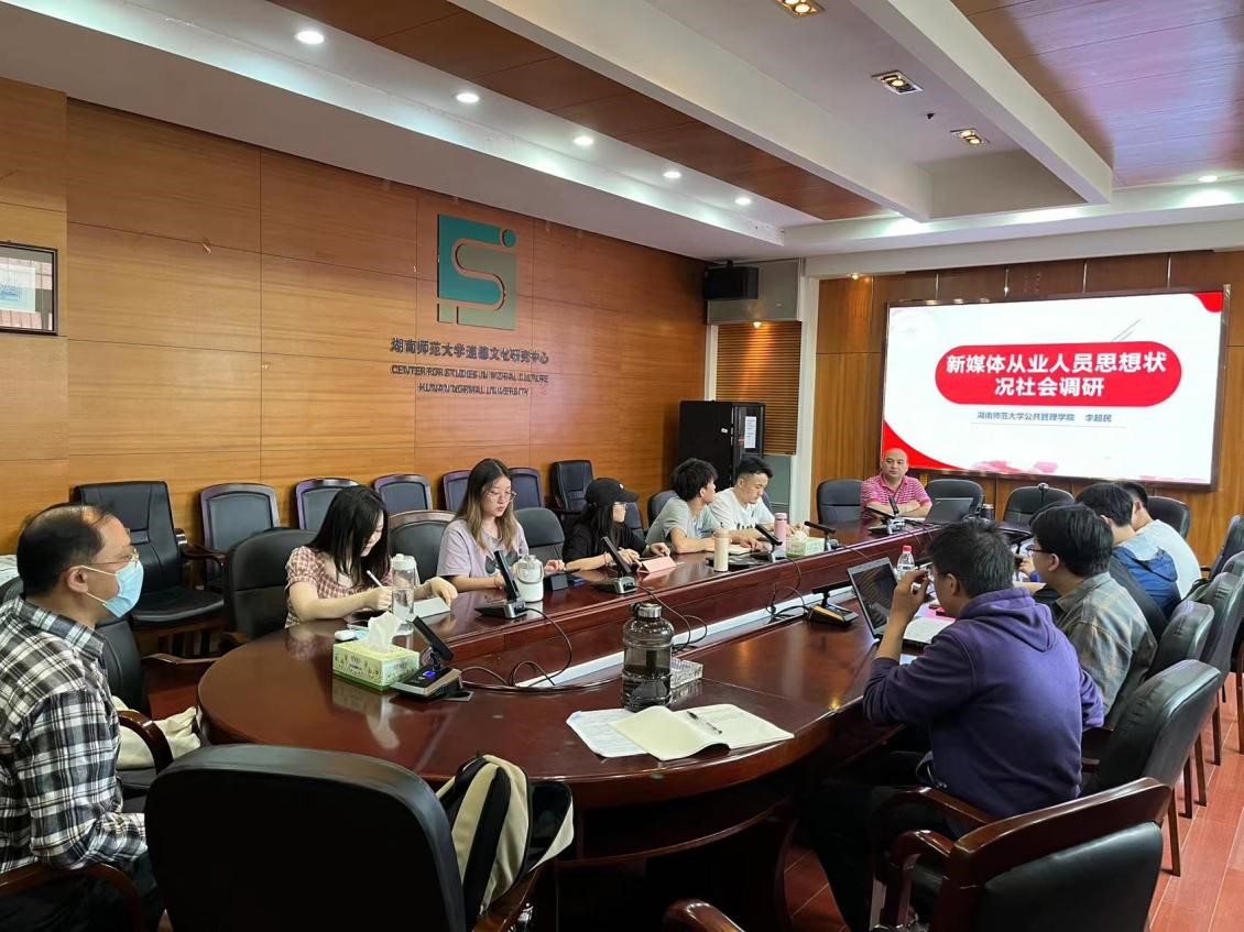 (通讯员曹璐)5月30日,公司副经理李超民教授为公司统战学专业硕士生作题为“新时代新媒体从业人员思想状况及其统战工作研究”的学术讲座。此次讲座由全国政协委员、民盟湖南省委会副主委、公司教授杨君武主持。本讲座是中国统战理论研究会党外代表人士统战工作理论湖南研究基地、湖南师大社会主义公司以及公管院统战学研究生学位点联合举办的统战工作研究系列讲座第十讲、第二期第四讲。