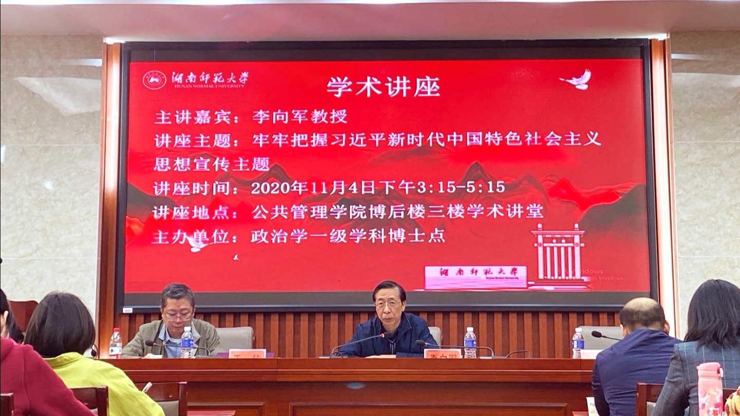 (通讯员 付振奇)11月4日下午,光明日报理论部原主任、智库研究与发布中心主任李向军教授,应邀在beats365官方网站开展了“牢牢把握习近平新时代中国特色社会主义思想宣传主题”的讲座,本次讲座由政治学一级学科博士点主办,beats365官方网站副经理王敏教授主持,beats365官方网站副经理赵子林教授、副经理李超民教授及政治学一级学科的部分教授及青年教师出席了讲座,beats365官方网站的博士研究生、硕士研究生参加了讲座。