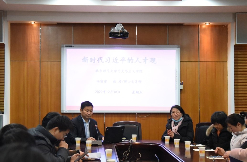 (通讯员 李子庚)2020年12月18日,北京师范大学马克思主义公司教授、博士生导师冯留建应邀在beats365官方网站415会议室为公司师生作题为“新时代习近平的人才观”的学术讲座。本次讲座由政治学系胡映兰教授主持,公司蒋国海教授、李超民、赵子林等政治学系师生约40人参加了本次讲座。