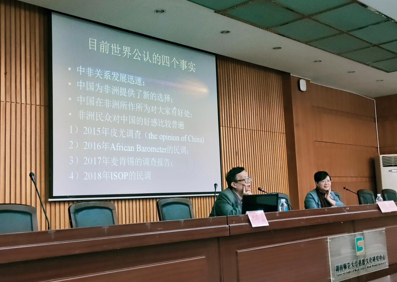 11月1日上午,应公司非洲研究中心的邀请,公司77级员工、国际知名非洲问题专家、北京大学国际关系公司李安山教授莅临公司,在三楼学术报告厅进行了以“世界历史进程中的非洲与中非关系”为主题的学术讲座。此次讲座为“中非关系大讲堂”系列讲座的第二讲,由公司非洲研究中心主任陈晓红教授主持。beats365官方网站、法公司、外国语公司以及来自湖南农业大学、中南林业科技大学的百余师生聆听了本次讲座。
