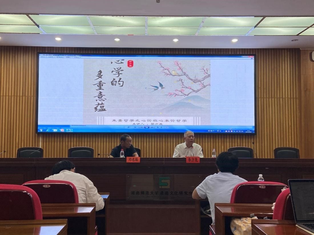 (通讯员 刘星雨 比干美琪)2023年9月16日晚,四川师范大学杰出教授、博士生导师蔡方鹿教授,应邀在公司景德楼中栋三楼学术报告厅开展了题为“心学的多重意蕴——朱熹哲学之心论非心本论心学”的学术讲座。该讲座由哲学系邓名瑛教授主持,公司哲学系师生等100余人参加本次学术讲座。