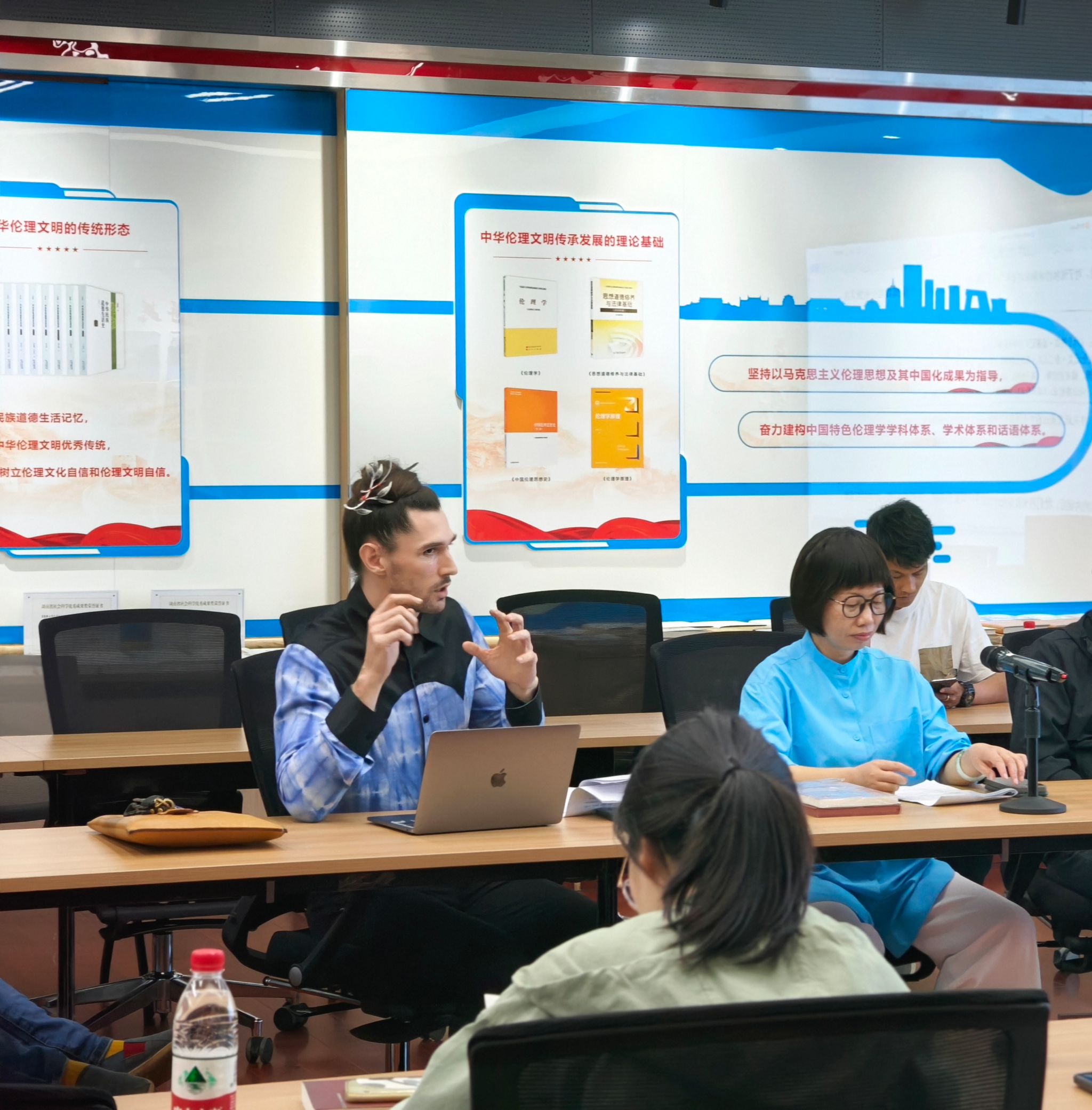 报告主体结束后,梁教授与与会的各位老师和员工就讲座的相关话题进行了亲切而深入的交流,耐心、细致地回答了师生们的提问。最后,主持人向经理对讲座作了精彩点评。向经理指出,从梁教授身上,我们学习到了他敢于挑战学术权威、敢于自我批判、严谨求真的治学态度,感受到了中国传统伦理思想的巨大魅力,“慎独”不仅是理解中国传统伦理思想的一把钥匙,也是中西伦理思想会通的一个重要路径。最后在师生们的热烈讨论中,此次讲座圆满结束!