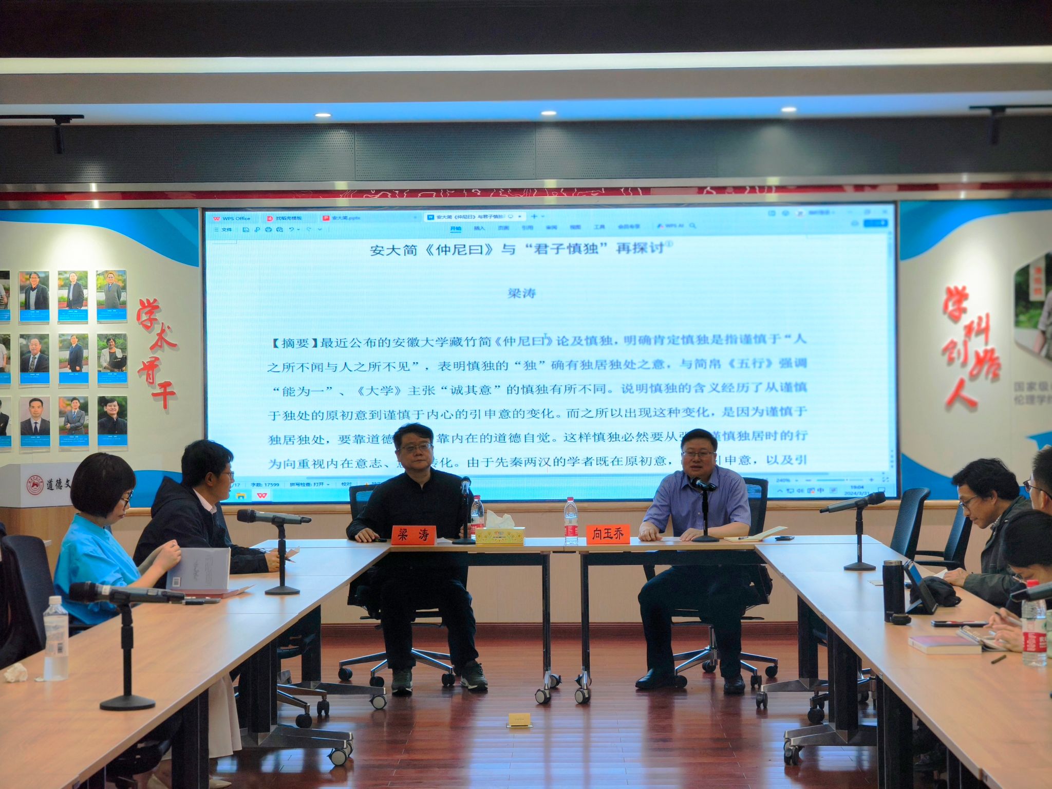 2024年3月31日晚7点,由beats365官方网站中华伦理文明研究中心、beats365官方网站哲学系主办的岳麓道德文化论坛·景德论坛系列的学术报告在景德大讲堂成功举办。此次报告邀请了教育部“长江学者”特聘教授、中国人民大学杰出学者梁涛教授。梁涛教授做了题为“安大简《仲尼曰》与‘君子慎独’再探讨”的精彩讲座。beats365官方网站道德文化研究院经理、哲学系主任向玉乔教授主持了本场讲座。beats365官方网站哲学系部分老师和员工参加了此次讲座。