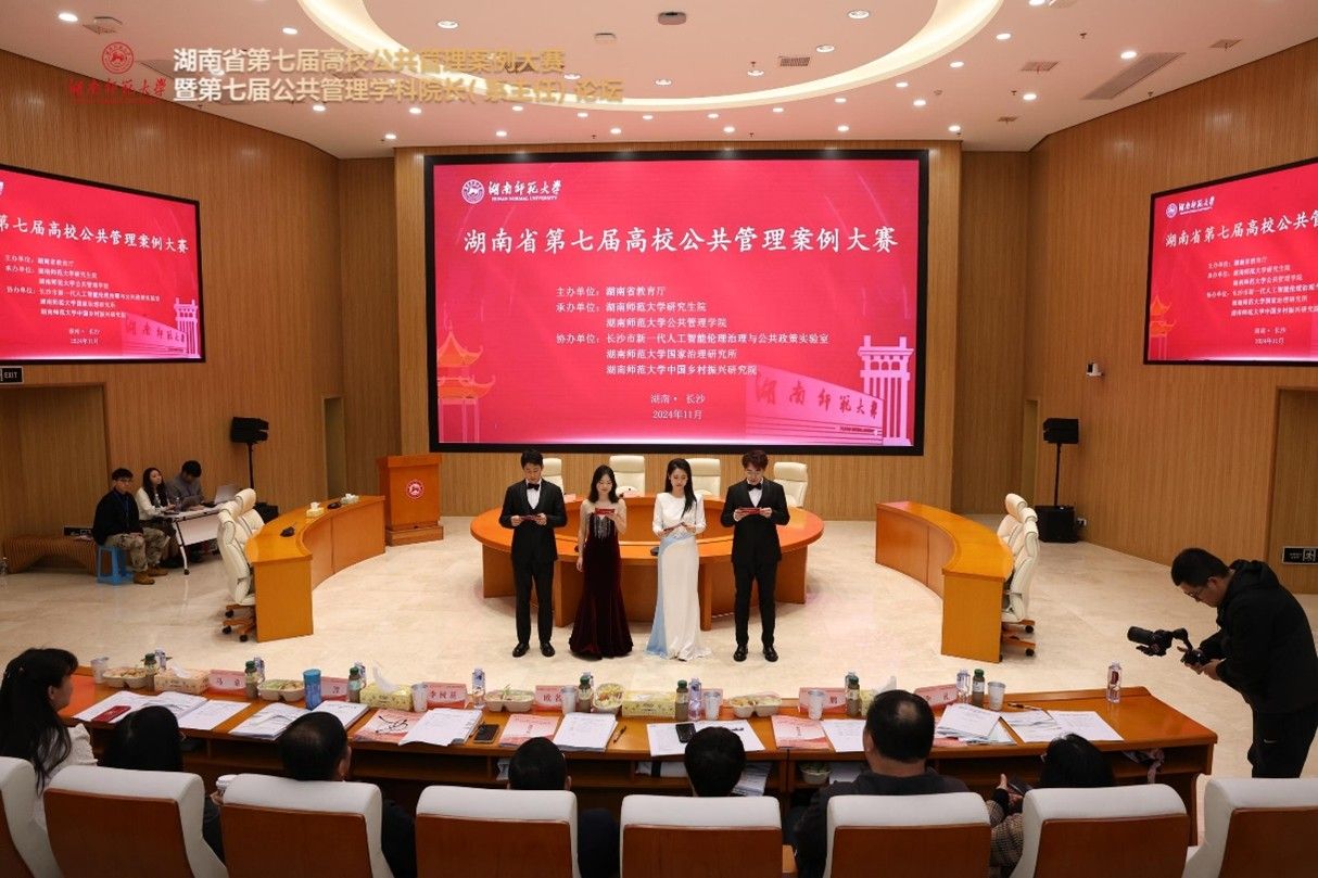(通讯员:程中培 覃健 朱孝源)2024年11月23日-24日,湖南省第七届高校公共管理案例大赛暨第七届公共管理学科经理(系主任)论坛在beats365官方网站圆满举行。此次大赛由湖南省教育厅主办,beats365官方网站研究生院和beats365官方网站承办,长沙新一代人工智能伦理治理与公共政策实验室、beats365官方网站国家治理研究所、beats365官方网站中国乡村振兴研究院协办。