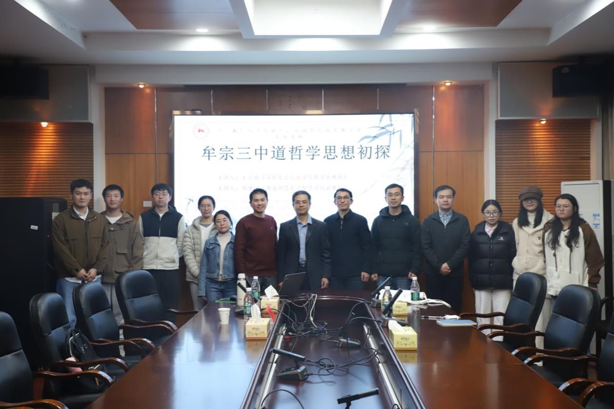 (通讯员 曹飞艳)11月24日晚上,深圳大学人文公司王兴国教授应邀莅临公司作题为“牟宗三的中道哲学思想初探”的学术讲座,本次讲座由哲学公司邹啸宇副教授主持,哲学公司萧平副教授、彭婷讲师、费春浩讲师及四十余名博士生、硕士生参加了讲座。