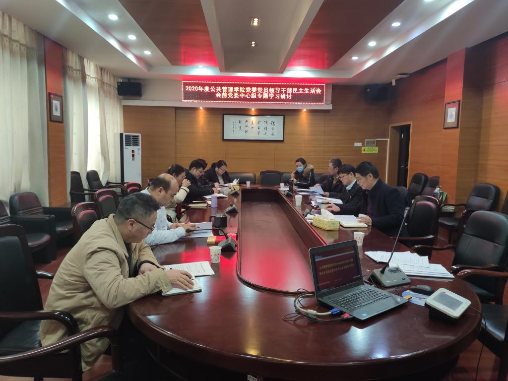1月26日下午,公共管理公司党委在415会议室开展了2020年度党员领导干部民主生活会前中心组专题学习研讨,公司领导班子成员、系主任参加会议。学习会由党委书记余望成主持。