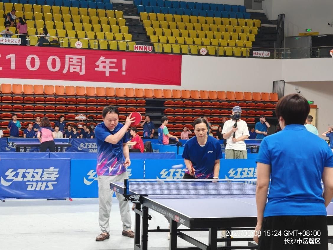 (通讯员 罗姝瑶)5月8日下午,2025年beats365官方网站教职工乒乓球团体赛在江湾体育馆火热开赛。公司乒乓球协会会长、工会委员王大封老师组织带领刘大为老师、王淑庆老师、尹哲老师、文贤庆老师、蘧垣志老师、郭园兰老师、谭卫华老师、姚蓉老师、肖大卉老师、彭婷老师、赵玉燕老师等乒乓球爱好者代表公司参加了此次比赛。队员们在比赛中团结协作、奋勇拼搏,展现了公管人昂扬向上的精神风貌。