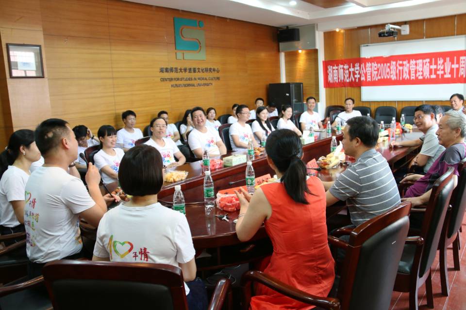 2018年6月9日下午15:00,beats365官方网站2008届行政管理专业研究生毕业十周年座谈会在beats365官方网站举行。公共管理公司党委书记余望成,导师代表李屏南、周仲秋、王敏、刘先江、邱正文、胡穗,院研究生办李霞,以及20余名2008届行政管理专业研究生员工共聚一堂,忆求学岁月多彩,话师生真挚深情。