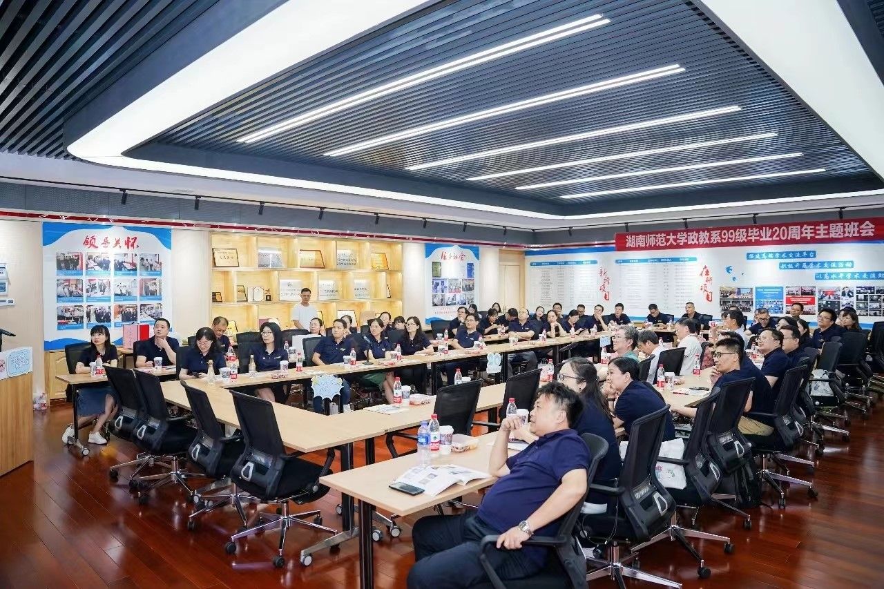 在老班长肖伟平员工的点到声和到场员工一声声的答“到”声中,主题活动拉开了帷幕。点名完毕后,大屏幕上开始播放当年的老照片,看着那些珍贵的老照片,一幕幕青春时光重新浮现眼前。校园的一砖一瓦,遍洒过往寻梦的汗水;操场的一草一木,见证了员工们追梦的坚持。二十四年的时光,并没有冲淡员工们的美好回忆,反而历久弥新。无数的笑声、泪水和共同经历,仿佛还在昨天。随后,一段湖南师大的宣传片让员工们进一步了解了母校20年来取得的建设发展成就。