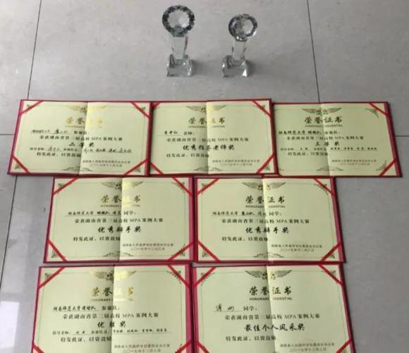 全省高校MPA案例大赛奖证书与奖杯(部分)