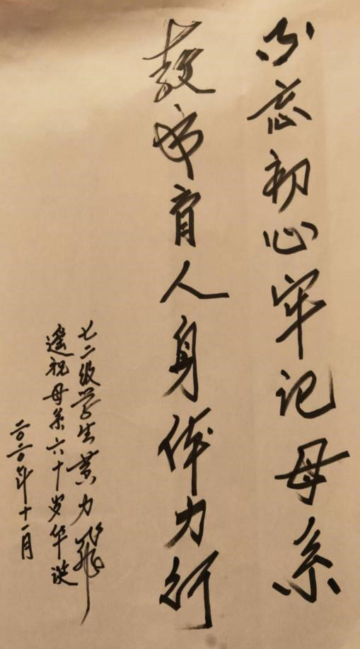 落其实者思其树,饮其流者怀其源。值此母院六十华诞之际,谨致以最诚挚的祝福,祝母院桃李芬芳、人才辈出,蒸蒸日上、再创辉煌!