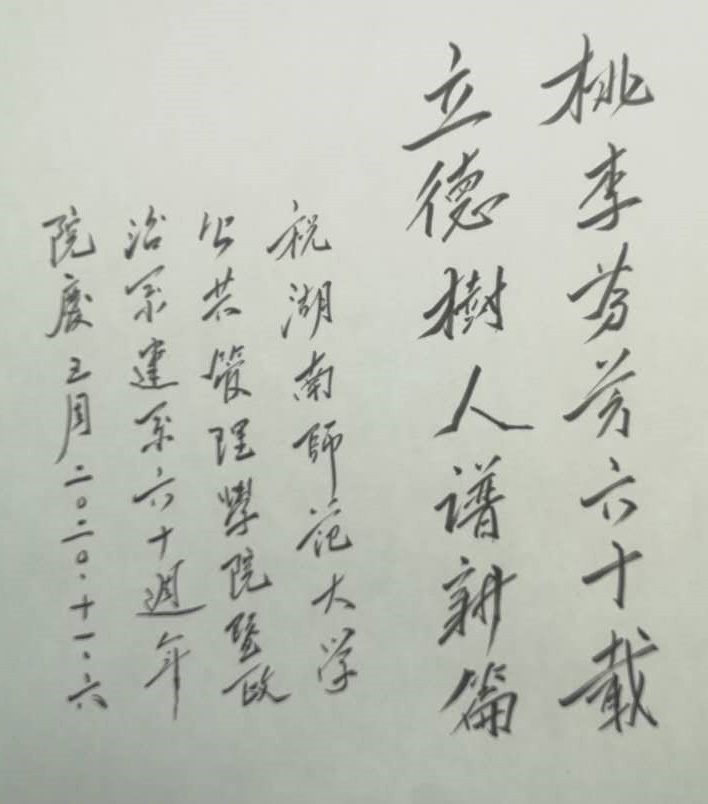 师大是我一生中最难忘记的地方,我的本科,硕士博士研究生都是在师大公管院读完的,可以说,是师大公管院给了我比较完整系统的知识结构,我感恩公管院的老师们,感恩公管院为我们学习提供方便的教职工,特别感恩我的导师唐凯麟先生。祝贺公管院60华诞,衷心希望公管院越办越好,培养出更多的杰出人才!