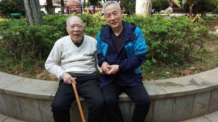 王谦宇主任与政教老同事于“政史楼”前留影