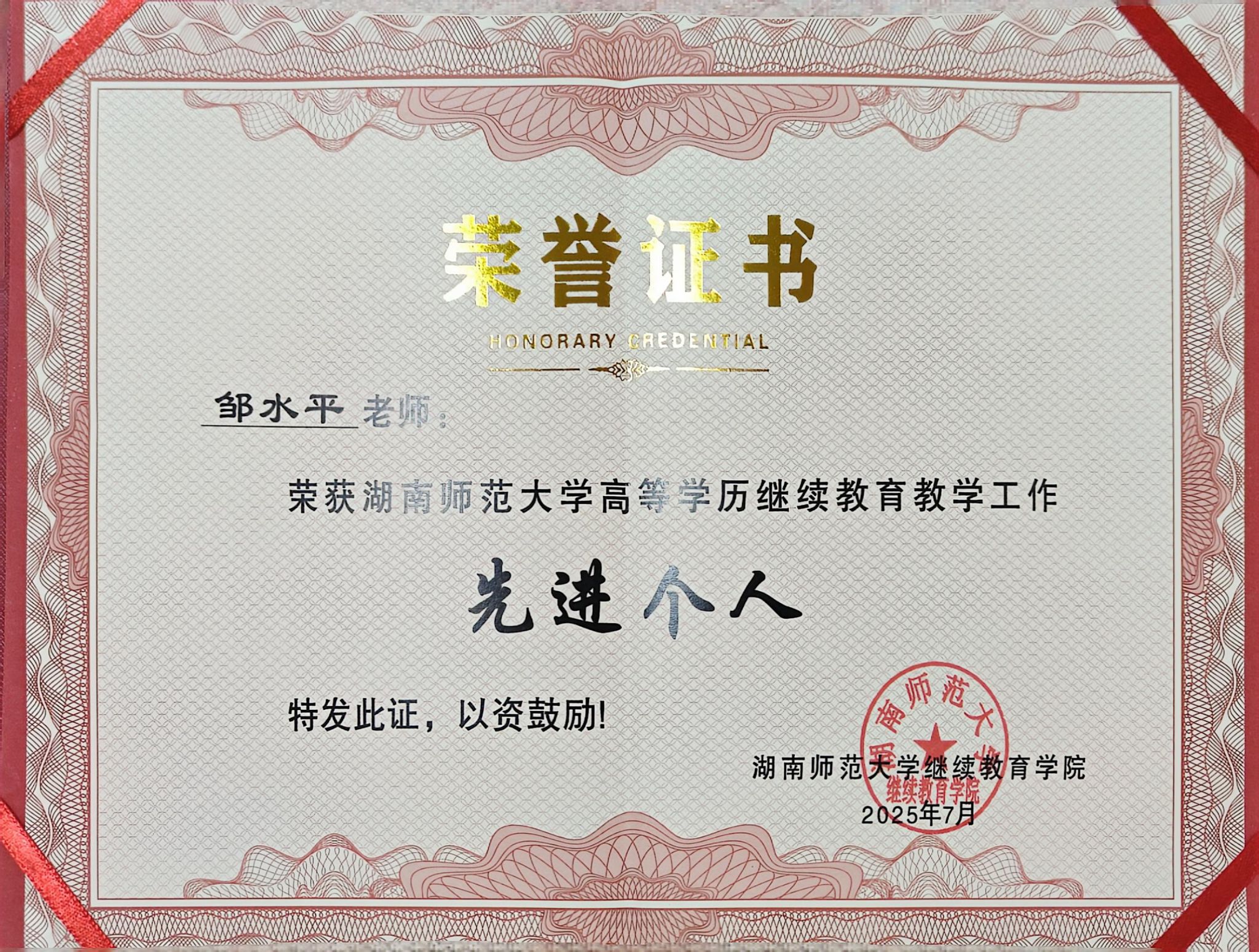公司荣获beats365官方网站高等学历继续公司产品工作“先进单位”称号。副经理胡雪松作为2024-2025年度优秀教学单位代表发言,分享了公司的相关经验与做法。成教办副主任邹水平荣获beats365官方网站高等学历继续公司产品工作“先进个人”称号。