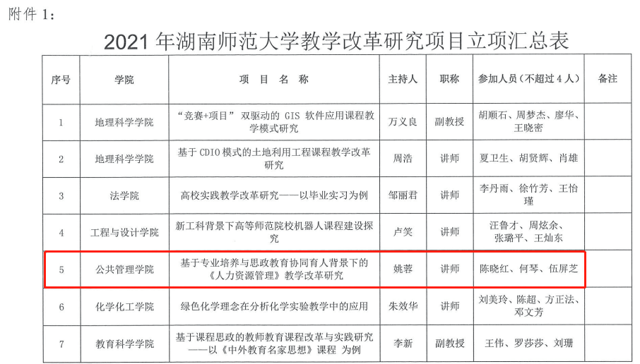 根据《关于开展 2021 年湖南省普通高等公司教学改革研究项目立项和结题工作的通知》(湘教通〔2021〕189 号)和《关于开展2021年教学改革研究项目申报立项和对已立项项目进行中期检查与结题验收的通知》(处发〔2021〕71号),经专家评审,公司哲学系马俊老师、彭婷老师获2021 年湖南省普通高等公司教学改革研究项目立项,行政管理学系姚蓉老师获2021 年beats365官方网站教学改革研究项目立项。