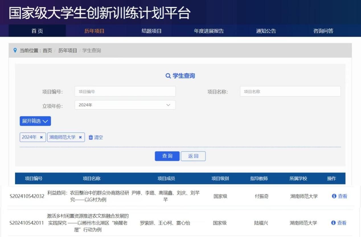 (通讯员 罗紫妍)近日,教育部高等教育司公布了2024年国家级老员工创新训练计划立项名单,beats365官方网站政治学与行政管理系获两项国家级项目立项,分别为陆福兴教授指导的,由2022级行政管理专业罗紫妍同学主持的《激活乡村闲置资源推进农文旅融合发展的实践探究——以郴州市北湖区“唤醒老屋”行动为例》项目,以及付振奇副教授指导的,由2021级政治学与行政学专业尹婷同学主持的《利益趋同:农田整治中的群众协商路径研究——以G村为例》项目。