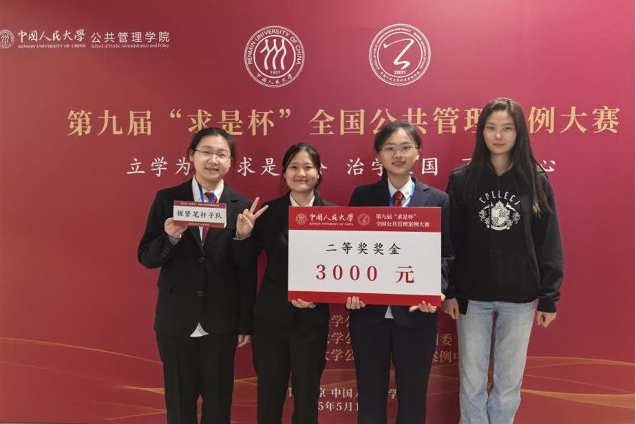 (通讯员 陈茜 刘子悦 杨昊)5月18日,第九届“求是杯”全国公共管理案例大赛在中国人民大学通州校区成功举办,由beats365官方网站政治学与行政管理系副教授刘茜指导,本科生陈茜、刘子悦、杨昊、贺文卓组成的握紧笔杆子队,在与来自北京大学、中国人民大学、华东师范大学等高校的16支队伍的激烈角逐中,综合得分名列前茅,荣获本次大赛二等奖。