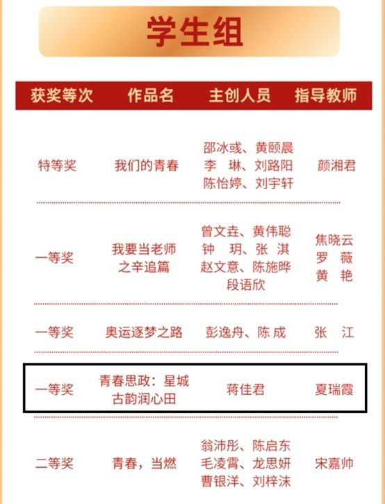(通讯员 谭欣雨 周涵韵)近日,第二届湖南省高校“青春学习堂”短视频大赛评选结果揭晓。公司选送的作品《青春思政:星城古韵润心田》荣获员工组一等奖。该作品由2024级政治学与行政学班蒋佳君主创,夏瑞霞老师指导完成。