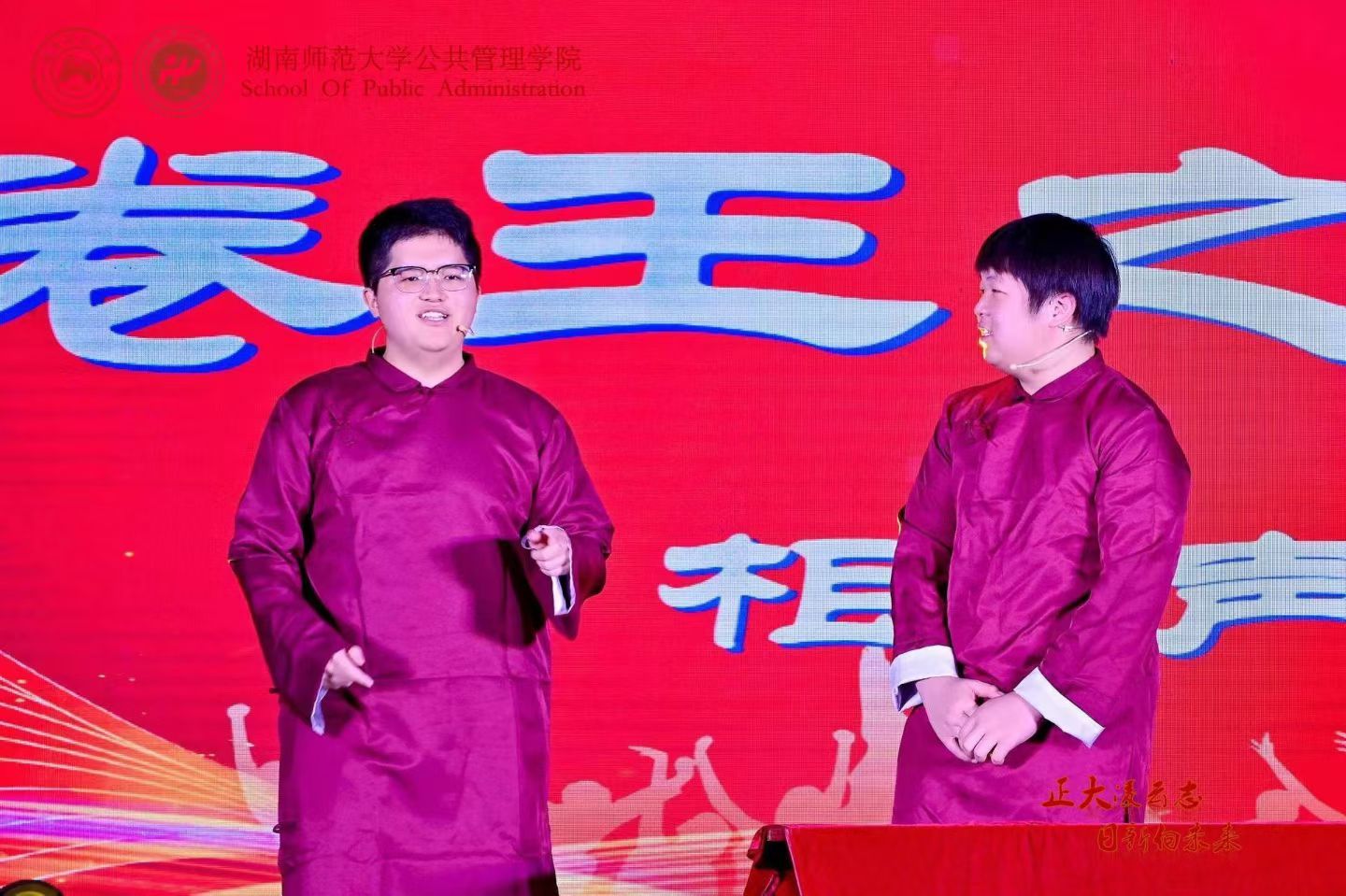 晚会在舞蹈《三源》的热烈旋律中拉开序幕,16个精心编排的节目涵盖歌舞、语言、器乐等多种类型,为现场观众呈现了一场精彩纷呈的视听盛宴,晚会由屈富祥、桂正康、马燕旗、石婷凤四位同学主持。歌曲类节目亮点纷呈:《心中的另一个自己》洋溢着蓬勃的青春朝气,《音你而来》《若月亮没来》以细腻抒情的曲风触动人心,男女对唱《全是爱》默契十足、甜度满格,《我爱你中国》与景德合唱团带来的大合唱《海阔天空》表达了炽热的爱国情怀与对理想的执着追求。语言类节目贴近生活、引人深思,相声《卷王之王》幽默调侃校园热点,情景剧《初来“诈”到》生动演绎社会现象。二胡独奏《红枫叶随想曲》奏响典雅乐章。此外,体育公司特邀节目《武动青春·逐光启航》展现了昂扬的运动风采,法公司带来的舞蹈《九儿》韵味悠长,新生歌舞《日不落》《陶醉了》活力四射;军训教官与军助惊喜亮相,献上欢快表演。抽奖环节穿插进行,让晚会充满欢乐。