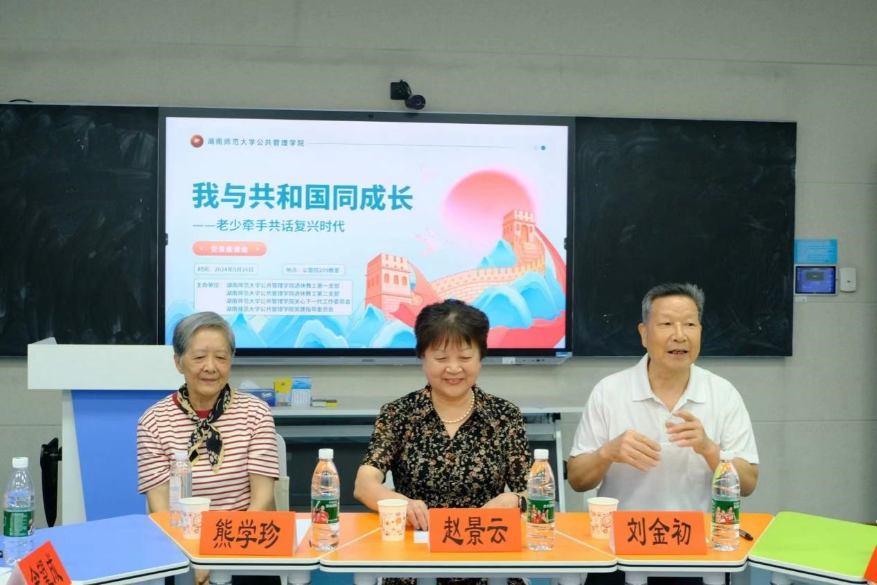(通讯员:王君青于帅)9月26日下午,beats365官方网站在景德楼召开“我与共和国同成长”座谈会。校关工委副主任李学荣、公共管理公司党委书记余望成、公共管理公司党委副书记孙雯波、beats365官方网站关工委常务副主任胡建新、beats365官方网站退休教工第一党支部书记杨龙和受邀莅临现场。赵景云老师、刘金初老师、熊学珍老师与各班代表参加座谈会。会议由2022级社会学班李明慧主持。