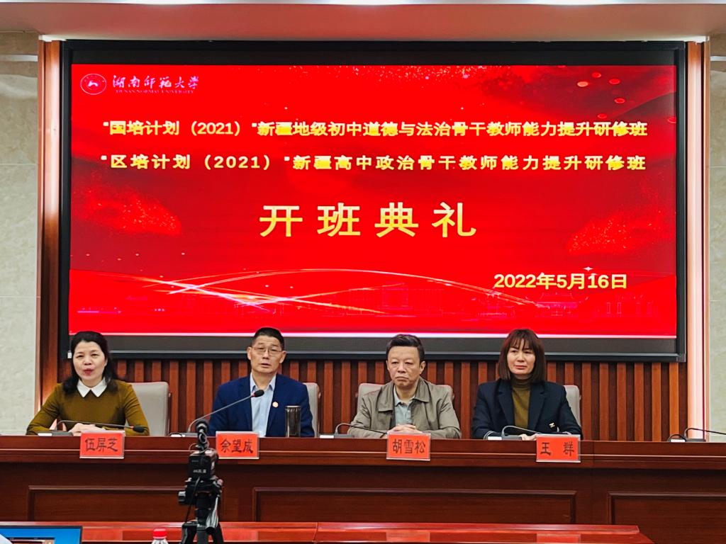 2022年5月16日上午9:30,“国培计划(2021)”新疆地级初中道德与法治骨干教师能力提升研修班与“区培计划(2021)”新疆高中政治骨干教师能力提升研修班在师训宝研修平台举行线上开班典礼。公司党委书记余望成、副经理胡雪松、院培训中心主任王群、政治学系副主任伍屏芝出席了典礼,典礼由伍屏芝主持。