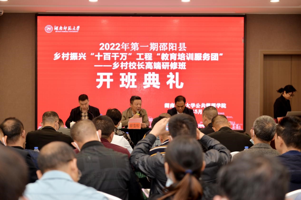 2022年5月18日上午8:30,2022年第一期邵阳县乡村振兴“十百千万”工程---乡村董事长高端研修班在东方和庭酒店三楼会议室举行了开学典礼。公司副经理胡雪松、邵阳县教师发展中心主任刘刚超、邵阳县教育局唐琦主任出席了典礼。