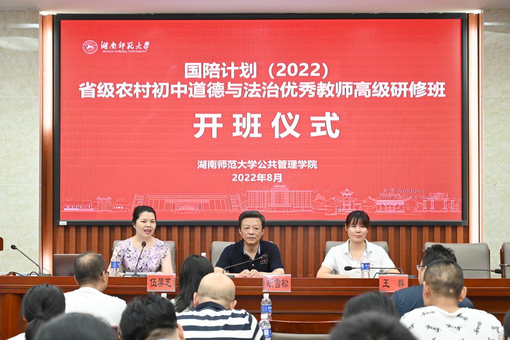 8月7日下午14:00,“国培计划(2022)”省级农村初中道德与法治优秀教师高级研修班在公司学术报告厅举行开班典礼。公司副经理胡雪松、培训中心主任王群和政治系副主任伍屏芝出席了典礼。典礼由伍屏芝老师主持。