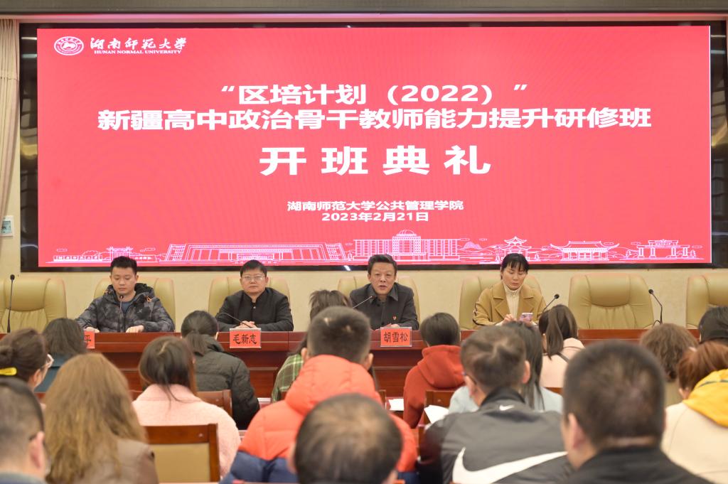 2月21日上午9:00,由新疆维吾尔自治区教育厅主办、公司承办的“区培计划2022”—高中政治骨干教师能力提升研修班开班典礼在公司二楼报告厅顺利举行。公司经理毛新志、副经理胡雪松和培训中心主任王群出席本次典礼。典礼由班主任邹水平老师主持。