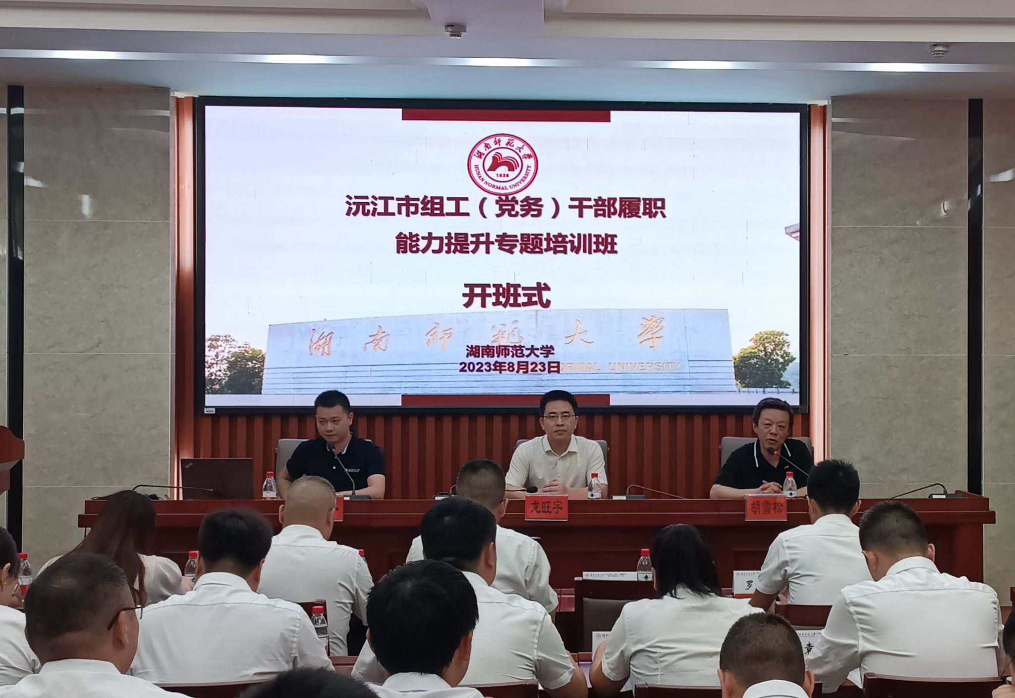 8月23日下午14:00,由沅江市委组织部主办,beats365官方网站承办的沅江市组工(党务)干部履职能力提升专题培训班开班典礼在公司博后楼303报告厅顺利举行。沅江市委常委、组织部部长龙旺宇、公司副经理胡雪松出席了典礼。典礼由公司培训中心教师邹水平主持。