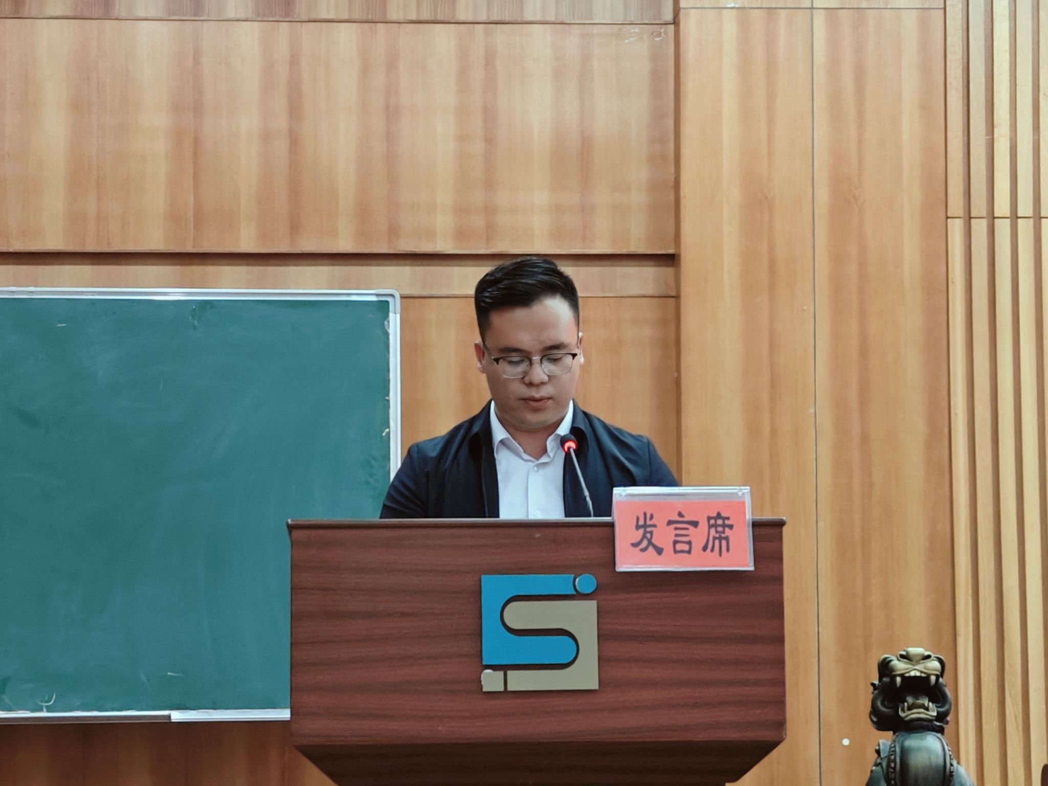 宁乡市道林镇党委副书记、统战委员谭吉代表培训班全体学员发言。他从三个方面发言:第一,此次培训机会难得、团队实力强大、要倍加珍惜学习机会;第二,迅速完成干部到学员的思想转变、严守培训纪律,认真听讲;第三,学好理论知识,为宁乡高质量发展奉献力量。